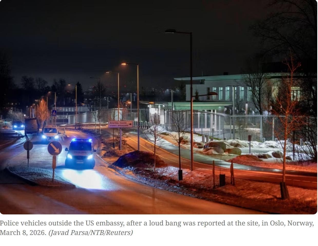 美国驻挪威大使馆发生爆炸 当地时间周日凌晨,美国驻挪威奥斯陆大使馆发生爆炸事件,挪威警方表示不排除爆炸案与恐怖主义有关,也不清楚是否与中东地区的事件有关,调查仍处于早期阶段。 截止目前,已有多座驻扎美军的海湾王国的美国外交大楼遭到伊朗报复性打击,包括科威特和沙特阿拉伯。 奥斯陆警方发言人米凯尔·德莱米尔告诉公共广播NRK:“我们已确定美国大使馆发生了爆炸,”并补充说爆炸发生在该建筑群领事区入口处。 联合调查与情报部门负责人弗罗德·拉尔森表示,“在当前安全形势的背景下看待此事是很自然的,这是针对美国大使馆的定向袭击。” 当被问及爆炸是否与恐怖主义有关时,弗罗德·拉尔森表示,“其中一种假设是恐怖主义”,但警方并未“完全锁定”这一说法。 挪威当局证实,正在搜捕肇事者,目前该地区未发现更多爆炸装置。