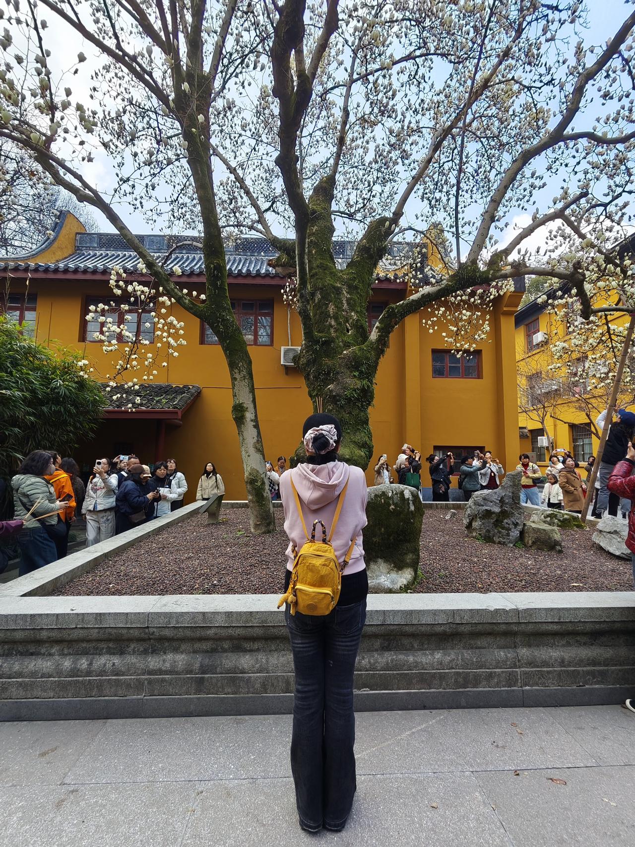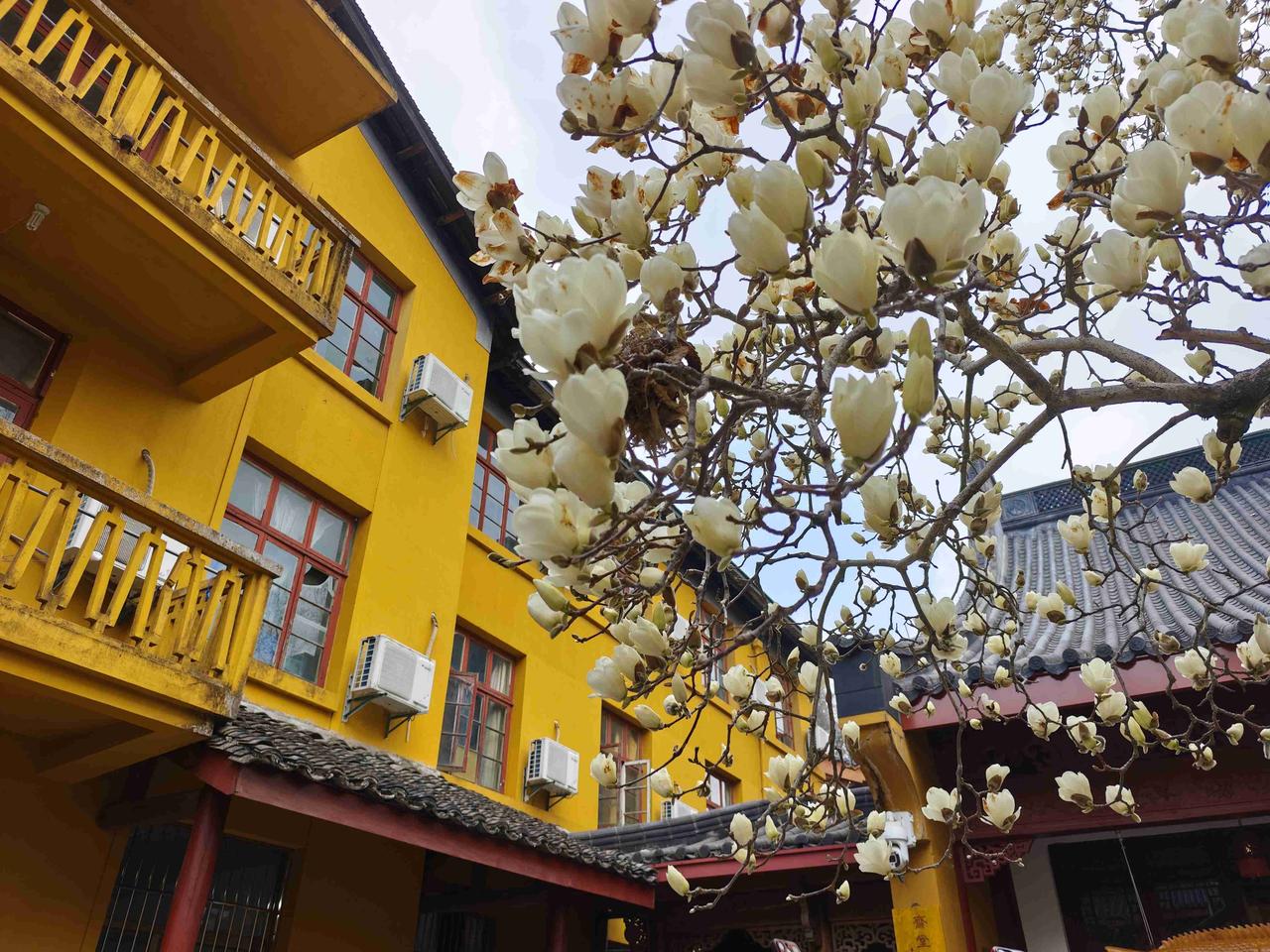 我的今日状态:😁轻松愉快 我这里的天气:☀️晴天 我又来到杭州法喜寺观看玉兰花,来为家人祈福,不求财富不求权贵,只求我老爸老妈和家人以及朋友们身体健康平平安安。 佛说:人生匆匆几十年,身外之物不可贪。慈悲喜捨增福慧,忍让谦和保平安。 一年一度的法喜寺玉兰王又开花了,这棵玉兰树已经有500年的历史了。 孙悟空山下压500年,这棵玉兰树如同孙悟空一样厉害,不知道经历了多少风风雨雨,依然苍劲有力。