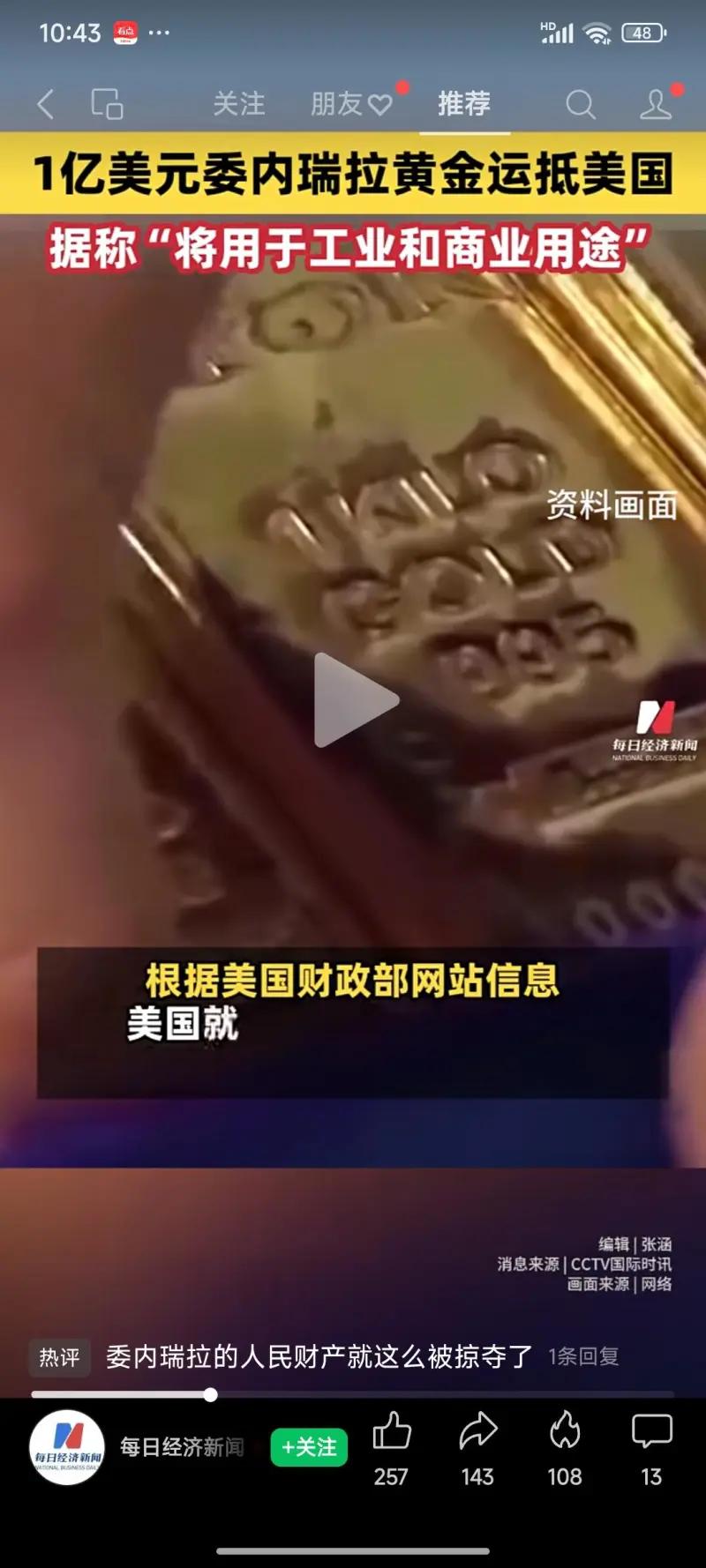 价值一亿美元的黄金从委瑞内拉运入美国! 网友:美国到处打劫,抢了赵长鹏的比特币,