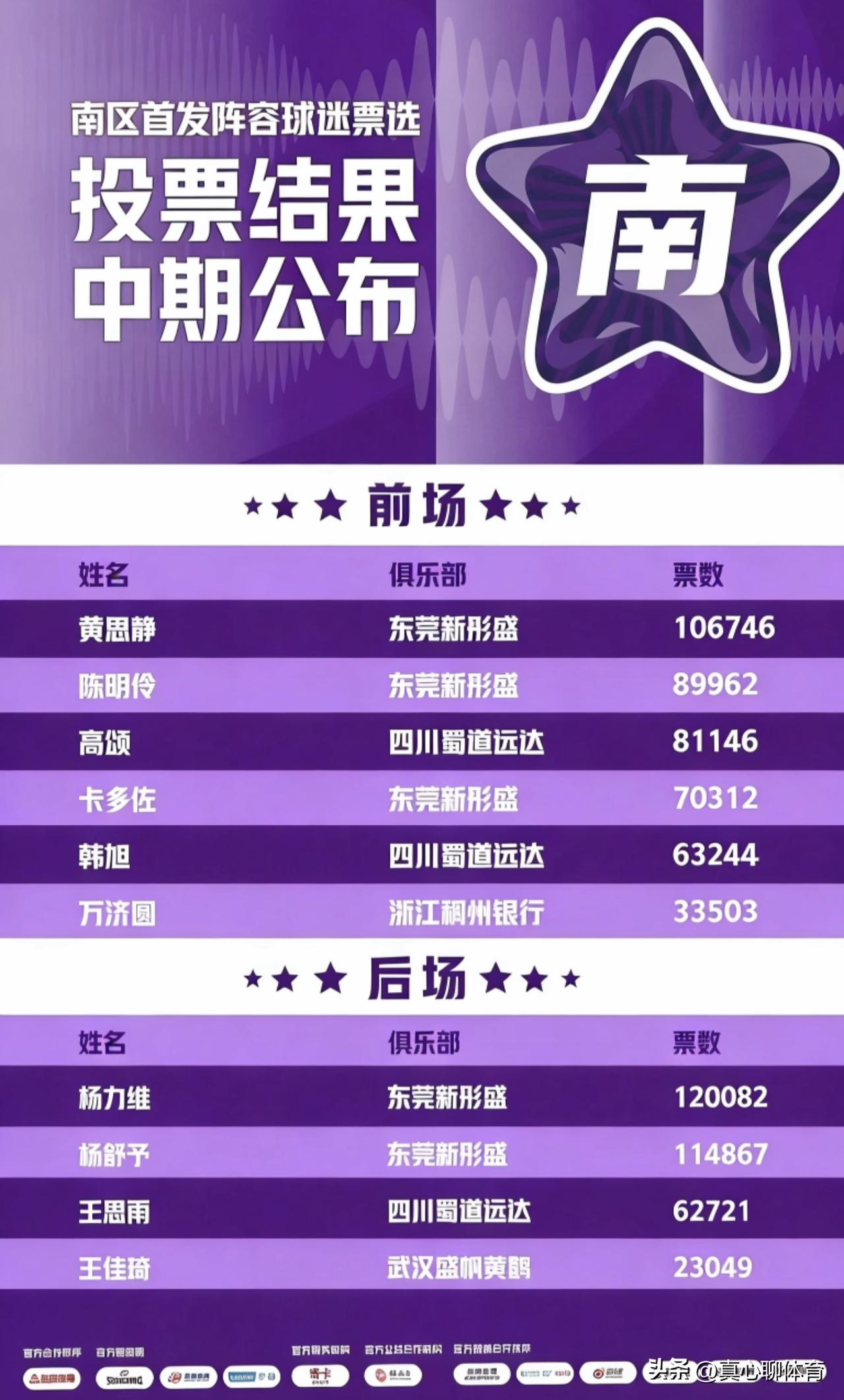 就热度和流量而言,广东男女篮受关注度独一档的[给力][给力][给力] 1、WCBA官方公布的全明星赛首发阵容投票结果中期公布显示,东莞新彤盛女篮杨力维、杨舒予和黄思静分别以120082票,114867票和106746票遥遥领跑全联盟,第四名四川队高颂(81146票)和第五名武桐桐(71752票),至少落后黄思静25W+票 2、CBA历史首位本土“百万票王”徐杰,在本届CBA全明星投票中获得了16540424票,领先第二名的赵睿(1280443票),徐杰以绝对优势获得总票王