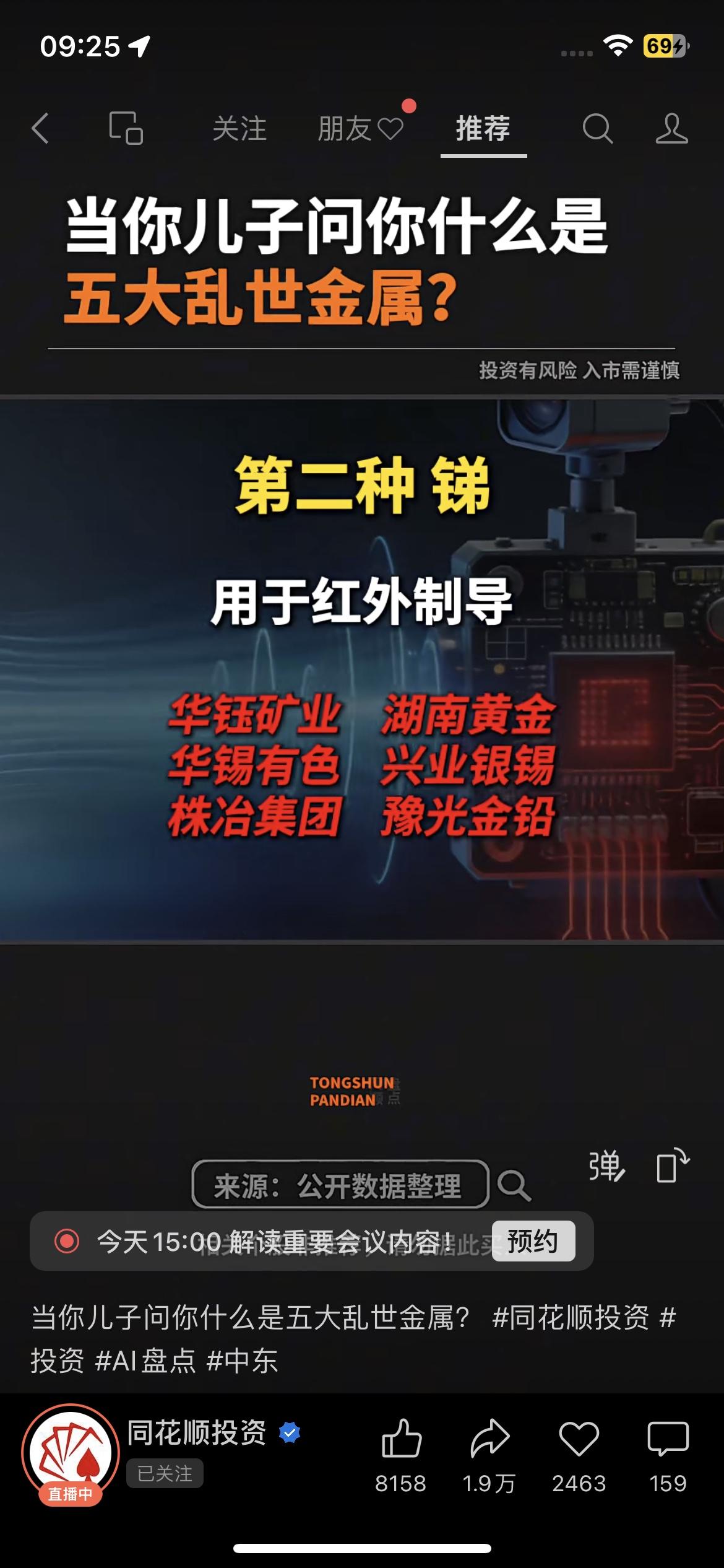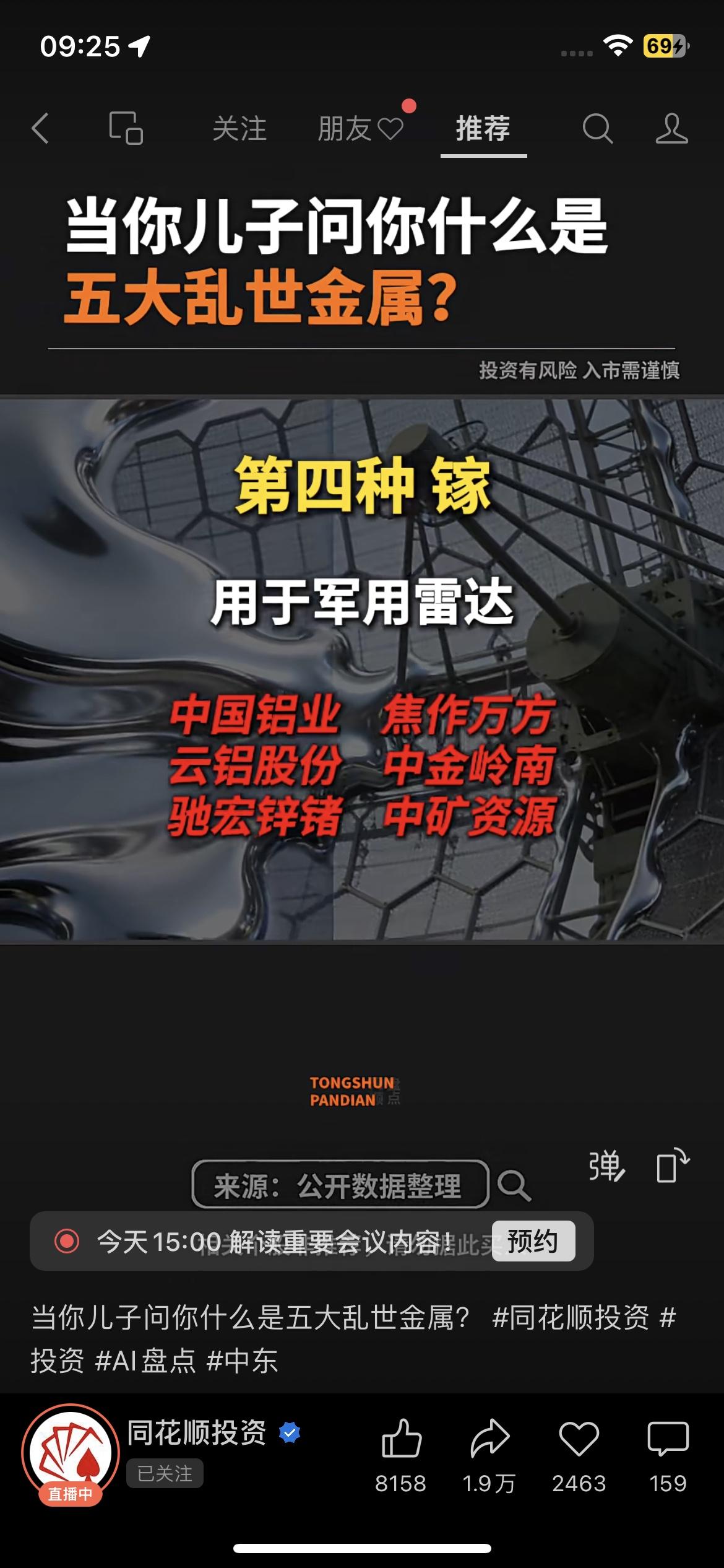 今早儿子连珠炮似的问我:“爸爸,什么是五大乱世金属?导弹为啥能精准制导?战机发动机里有啥?黑夜里士兵怎么看见敌人?还有油价为啥又涨了?” 我点开手机给他看—— • 钨,是穿甲弹的“牙齿”,中东一紧,军工股直接被资金盯上; • 锑,是导弹的“眼睛”,红外制导全靠它,没它精准打击就是瞎打; • 钼,是航空发动机的“筋骨”,耐高温扛强度,战机能不能飞全看它; • 锗,是黑夜战场的“夜视眼”,红外成像的核心,夜战优势全靠它; • 再加上油价暴涨20%突破100美元,霍尔木兹海峡一堵,全球五分之一的石油运输卡脖子,咱普通人的出行、买菜全跟着涨。 说白了,和平时期这些都是工业原料,乱世一来,全成了军工硬通货和“乱世溢价”。A股里中钨高新、华钰矿业、洛阳钼业、云南锗业这些,直接被推上风口。 市场有风险,投资需谨慎,不构成任何投资建议。 你身边有人聊过这些乱世金属和油价吗?评论区聊聊,我挨个回复。 乱世金属 油价暴涨 军工板块