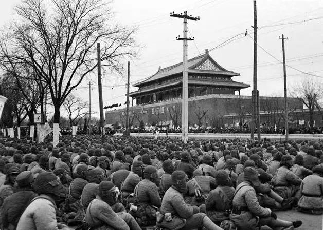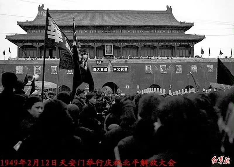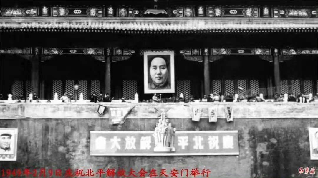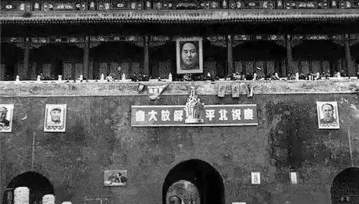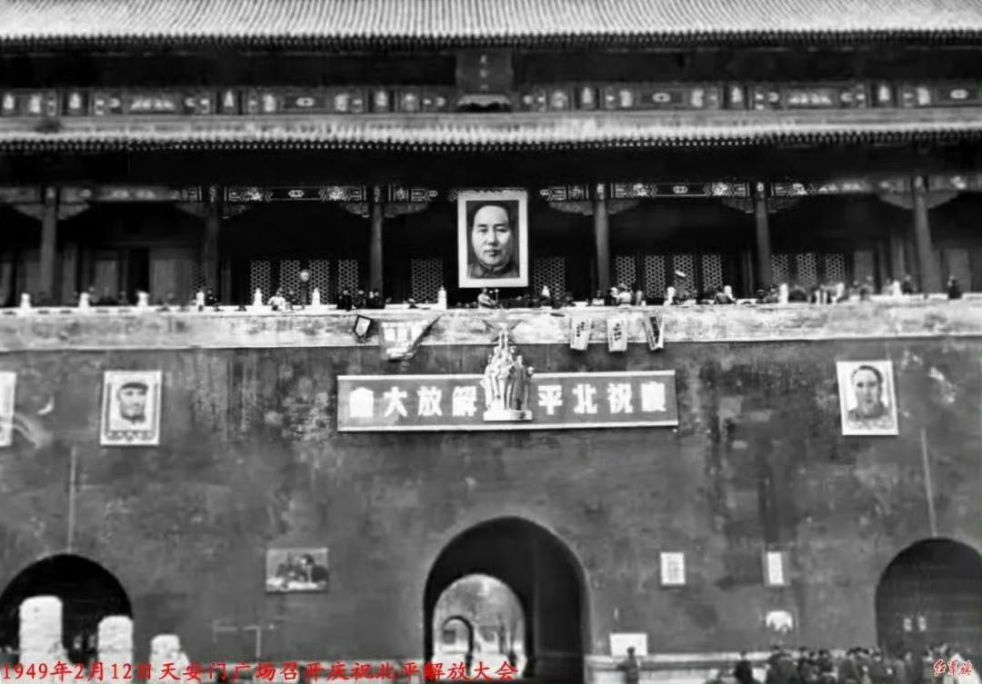 一组老照片,1949年北平刚和平解放时的天安门,也是第一次挂毛主席画像!