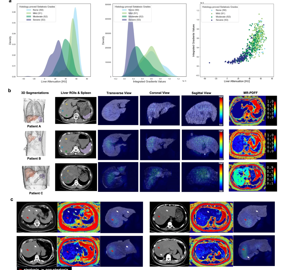 最近,阿里达摩院发布了一项重磅成果——脂肪肝筛查AI模型MAOSS,只需通过一次普通平扫CT,就能识别哪些脂肪肝患者可能向肝纤维化、肝硬化方向发展。换句话说,不需要额外检查、不用增强造影,也不用增加费用,原本用于体检或门诊的普通CT,就能提前给出慢病风险预警。