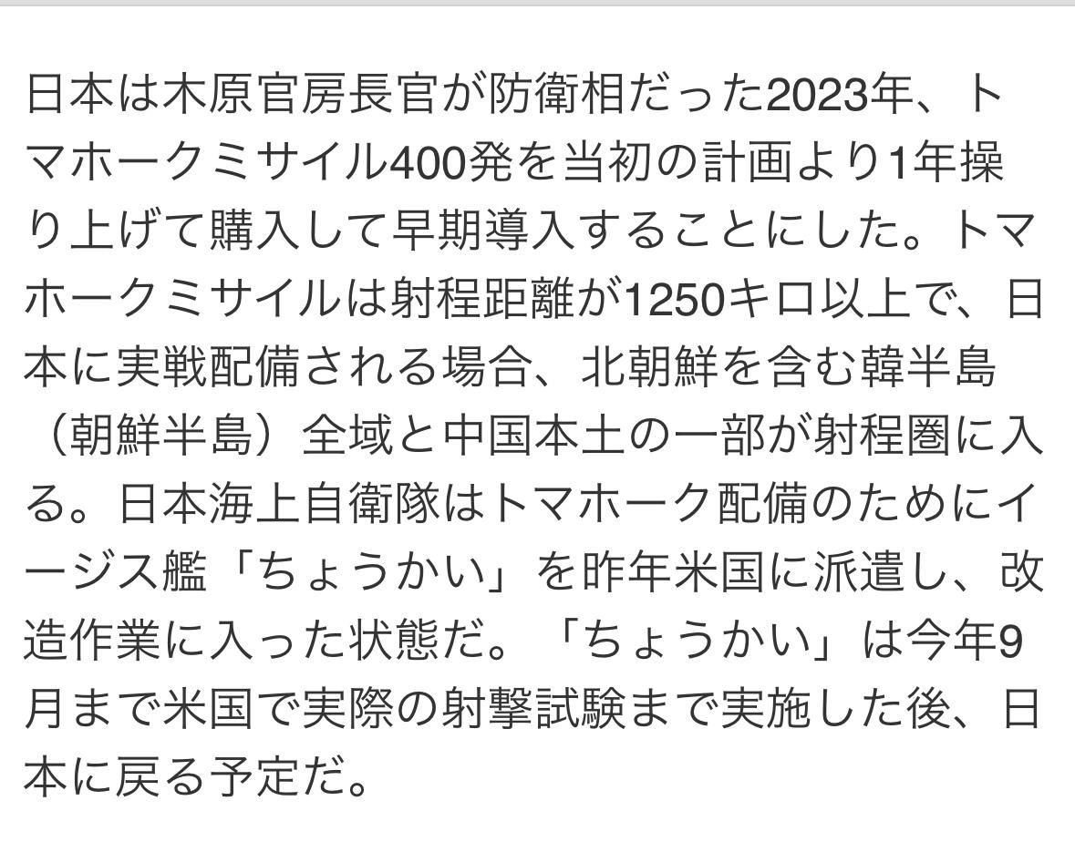 9日凌晨,防卫省将一辆远程导弹发射车运抵熊本陆上自卫队军营部署。此远程导弹是日本12式地对舰导弹的改进型,射程约为1000公里。 此次交付熊本的导弹,能够从陆地攻击入侵舰艇,这是防卫省为加强西南地区防御能力而采取的措施,将中国沿海地区和台湾周边海域纳入打击范围,使日本能够从入侵部队射程之外发起攻击。 23年采购的400枚战斧巡航导弹射程超过1250公里。宙斯盾驱逐舰鸟海号计划9月底前在美国进行实弹射击测试。