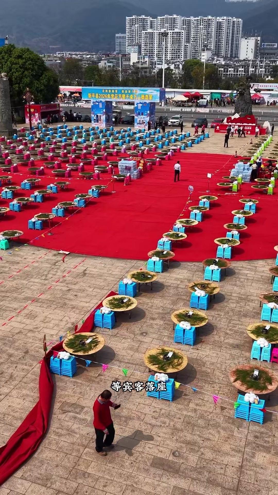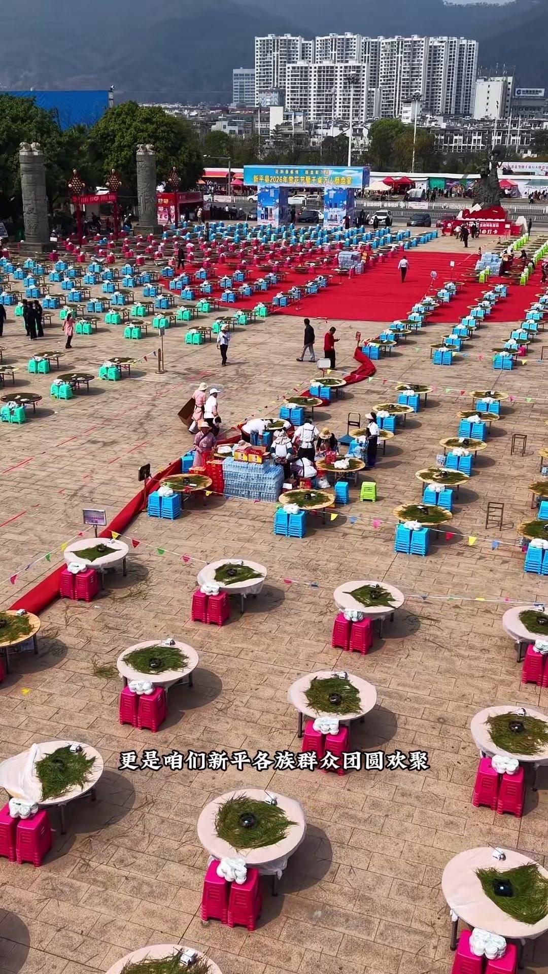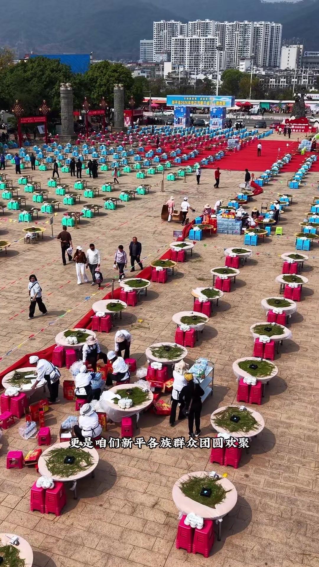 🔥云南新平千桌万人磨盘宴太震撼了!上千个磨盘摆成长龙,一眼望不到头的长街宴太有冲击力了!新平作为彝族傣族自治县,民族风情浓郁,美食多风景也好。磨盘宴可不只是一顿饭,更是各族群众团圆欢聚、传承民俗文化的大日子。等宾客落座,大家围坐磨盘旁,吃在一起、乐在一起,这种朴实又热情的烟火气太让人感动了。