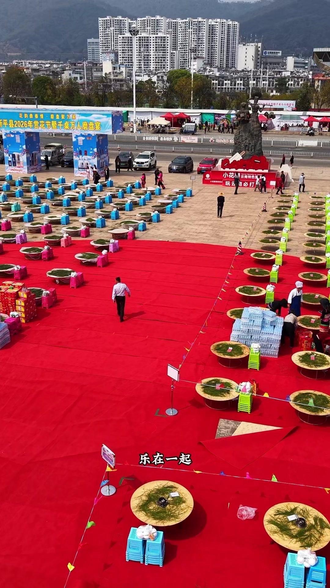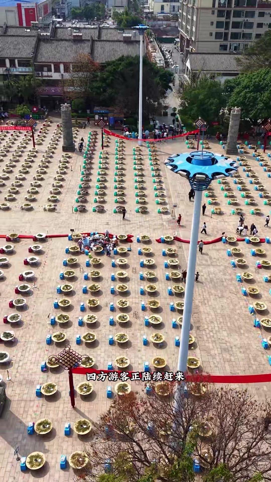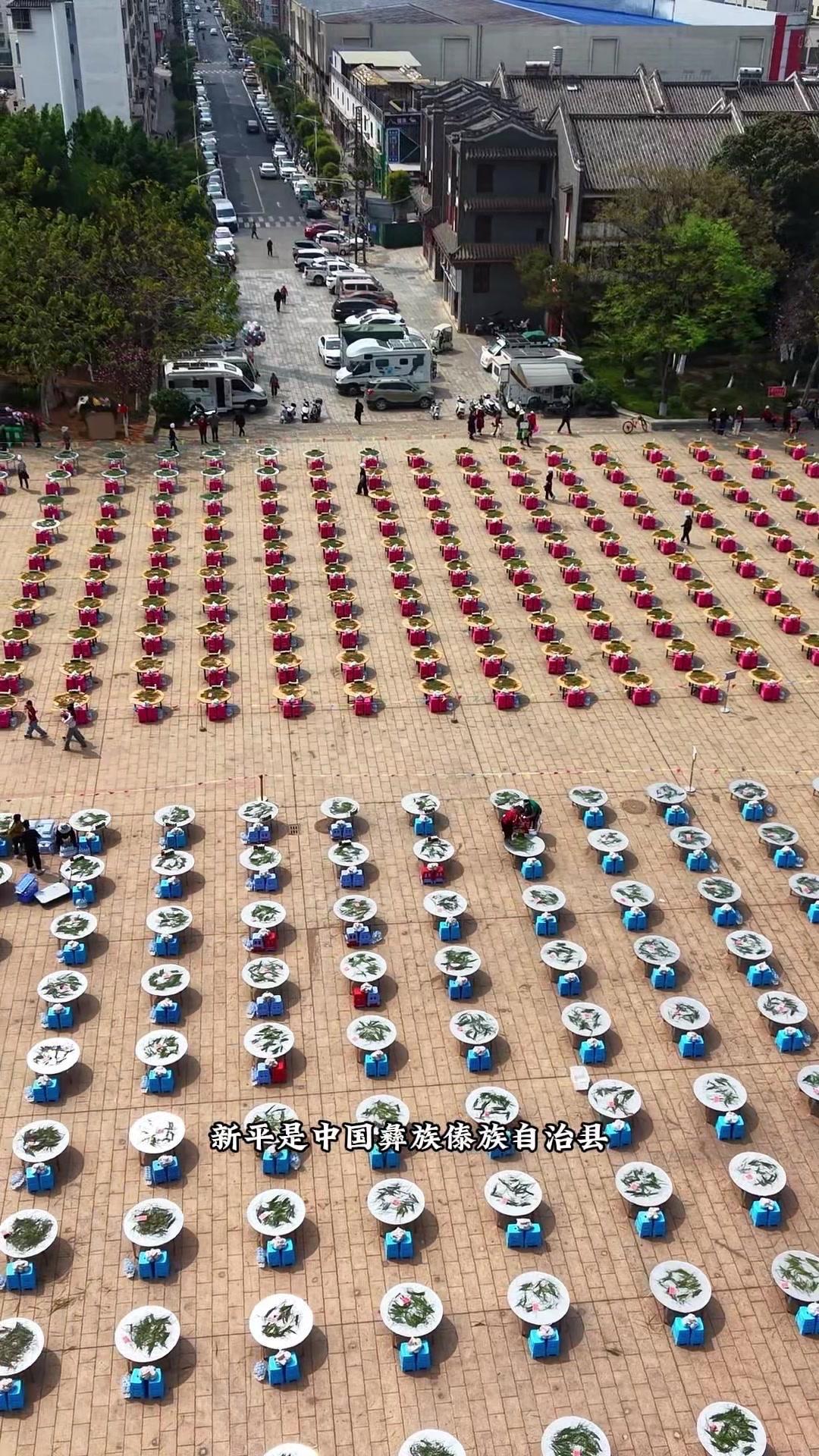🔥云南新平千桌万人磨盘宴太震撼了!上千个磨盘摆成长龙,一眼望不到头的长街宴太有冲击力了!新平作为彝族傣族自治县,民族风情浓郁,美食多风景也好。磨盘宴可不只是一顿饭,更是各族群众团圆欢聚、传承民俗文化的大日子。等宾客落座,大家围坐磨盘旁,吃在一起、乐在一起,这种朴实又热情的烟火气太让人感动了。