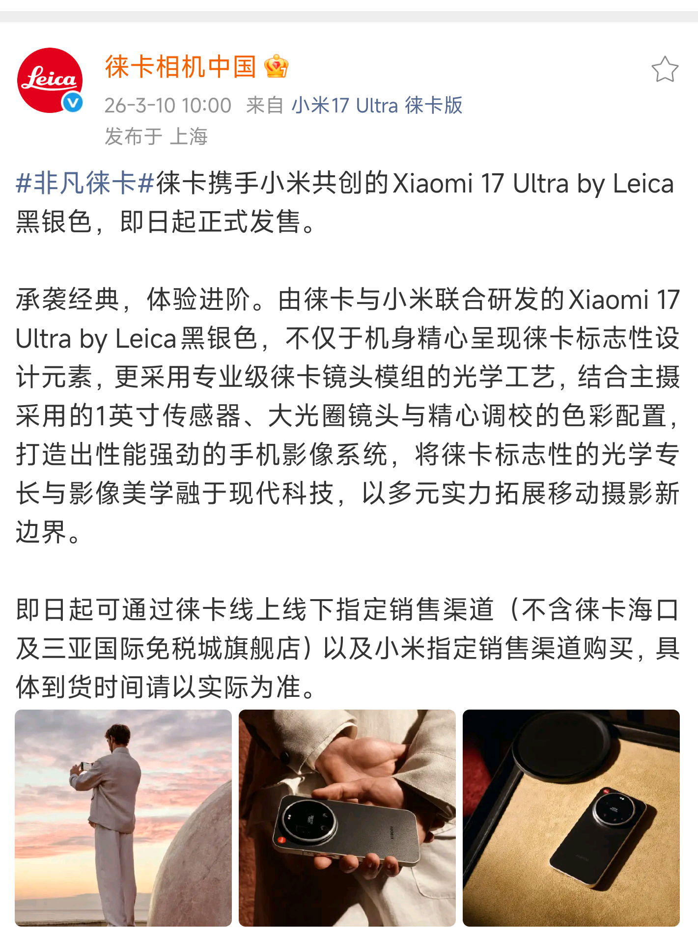 小米17Ultra黑银色成为了第一款且唯一一款徕卡中国门店售卖的手机。