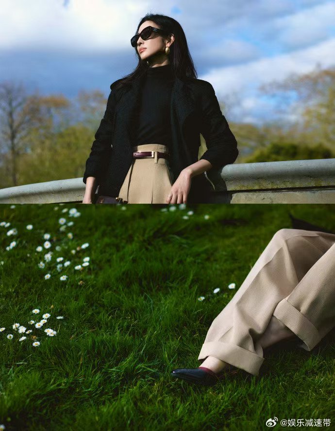 早说给袁姗姗上老钱风 真该早点给袁姗姗整老钱风!白衫黑裤简约,细框眼镜添清冷,高
