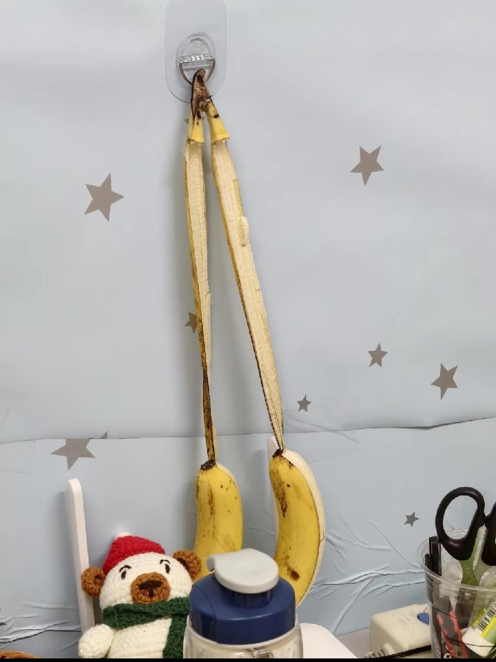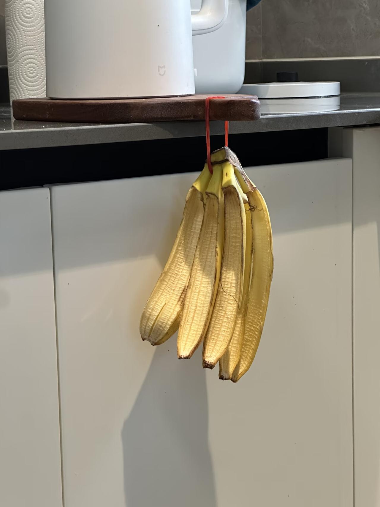香蕉皮:留不住你,终究是我错付了🍌生活哪会真的无聊啊,有意思的小事藏在每一个突发奇想里。 之前在哪本书里看到,说香蕉不能平着放,要挂起来才不容易坏。这话我记了好久,某天下午闲着没事,真就把刚买的一串香蕉,认认真真挂在了厨房角落。 结果在某天傍晚一转头,香蕉安安静静摔在了地上,像在用行动告诉我:下次还是让我躺着吧,别折腾了。香蕉