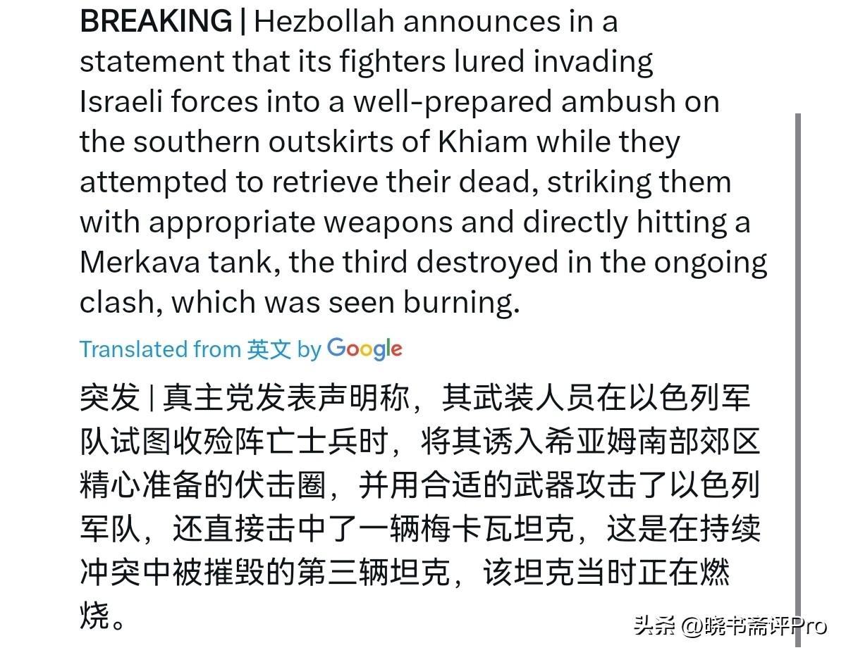 以色列军队中了埋伏,损失惨重!3月10日,黎巴嫩真主党发表声明称,以色列军队在希亚姆南部郊区进行侵略,而真主党利用打死了的以色列军人设下圈套,当以色列军人试图收回他们的死去的同伴时,真主党成员突然对这些军人发动进攻,武器袭击他们,并直接击中了一辆梅卡瓦坦克。 真主党表示,这是在正在进行的冲突中被摧毁的第三辆坦克,坦克中弹之后燃起了熊熊大火,炮塔与车体连接处冒出滚滚黑烟,坦克内部弹药被引燃引发连环殉爆,现场传出剧烈爆炸声,以军装甲分队瞬间陷入混乱。以军大乱,真主党趁机进行攻击,此次伏击造成以军多人伤亡,除被彻底摧毁的梅卡瓦坦克外,另有一辆装甲运兵车被击伤。 局面紧急,进攻不利 ,以军被迫在火力掩护下仓促撤离战场,仍旧未能完整回收所有阵亡人员遗体与装备残骸。很显然,面对以色列军队的地面进攻,真主党设下伏击圈精准杀伤,而以军所谓的“绝对安全”的装甲推进已被打破。从武器上来说,真主党并不占据优势,但是真主党的优势是熟悉地形,可以依托有利地形进行方式。以色列妄图把真主党一网打尽,但是,难度无疑非常之大,以色列付出的伤亡也越来越大。
