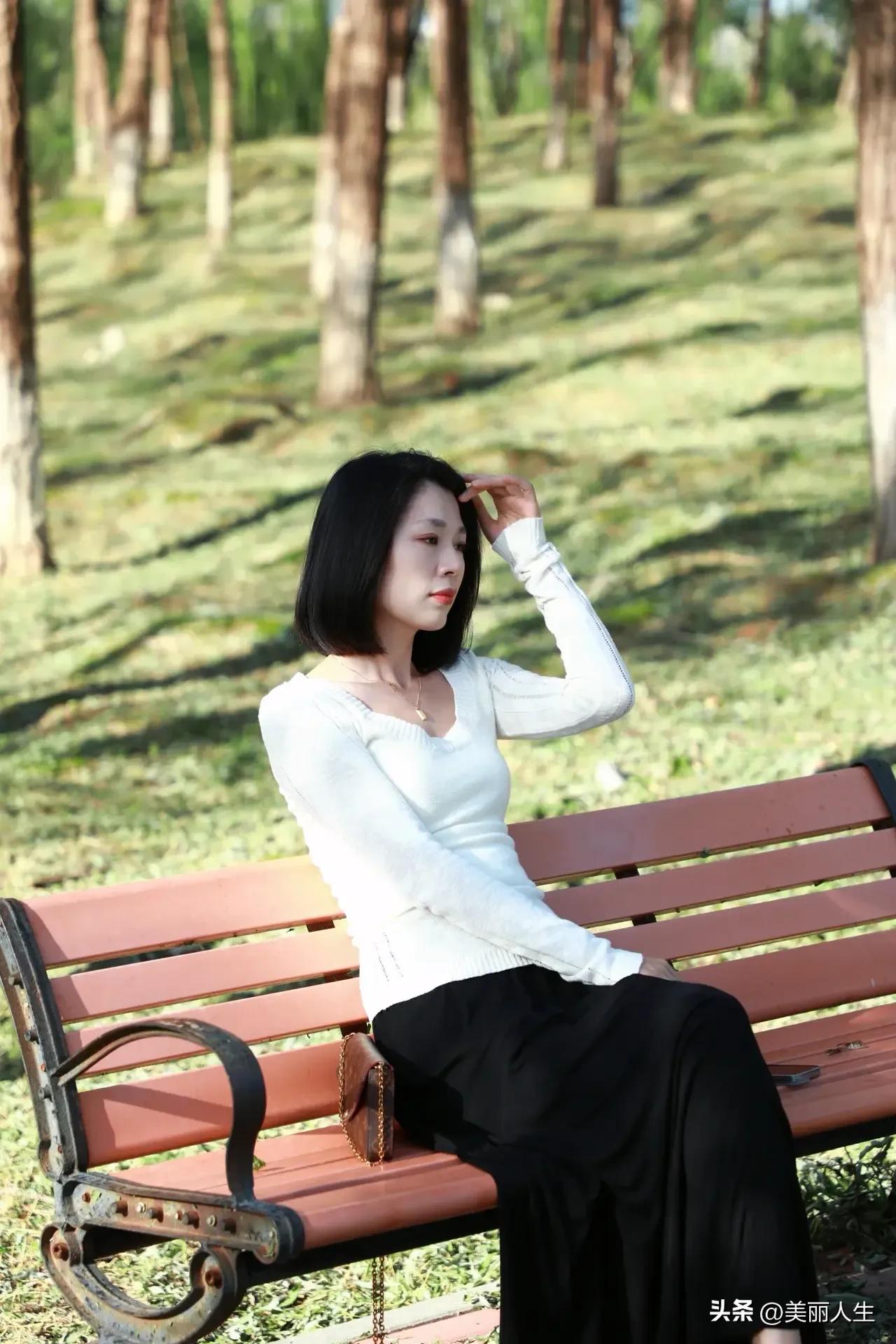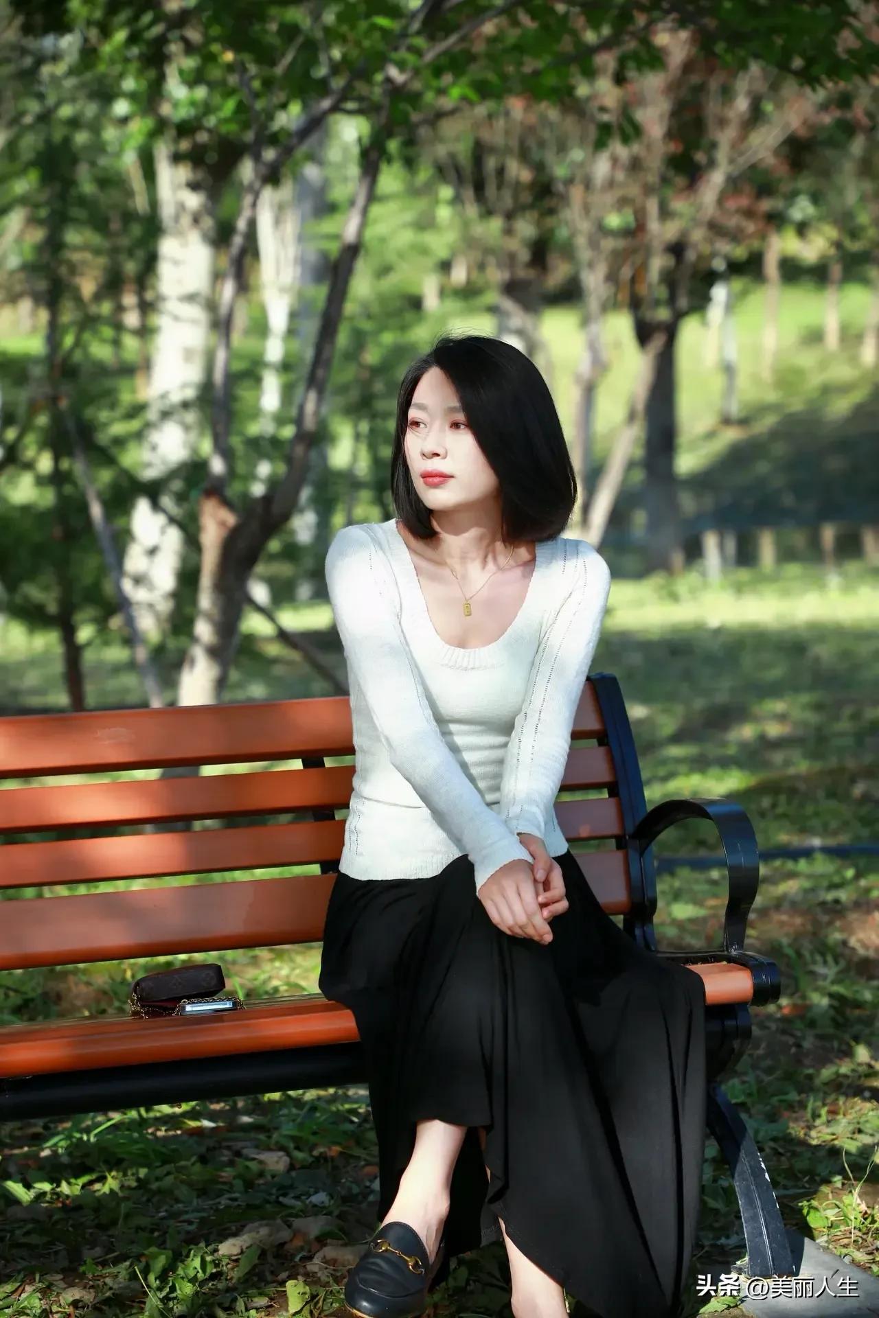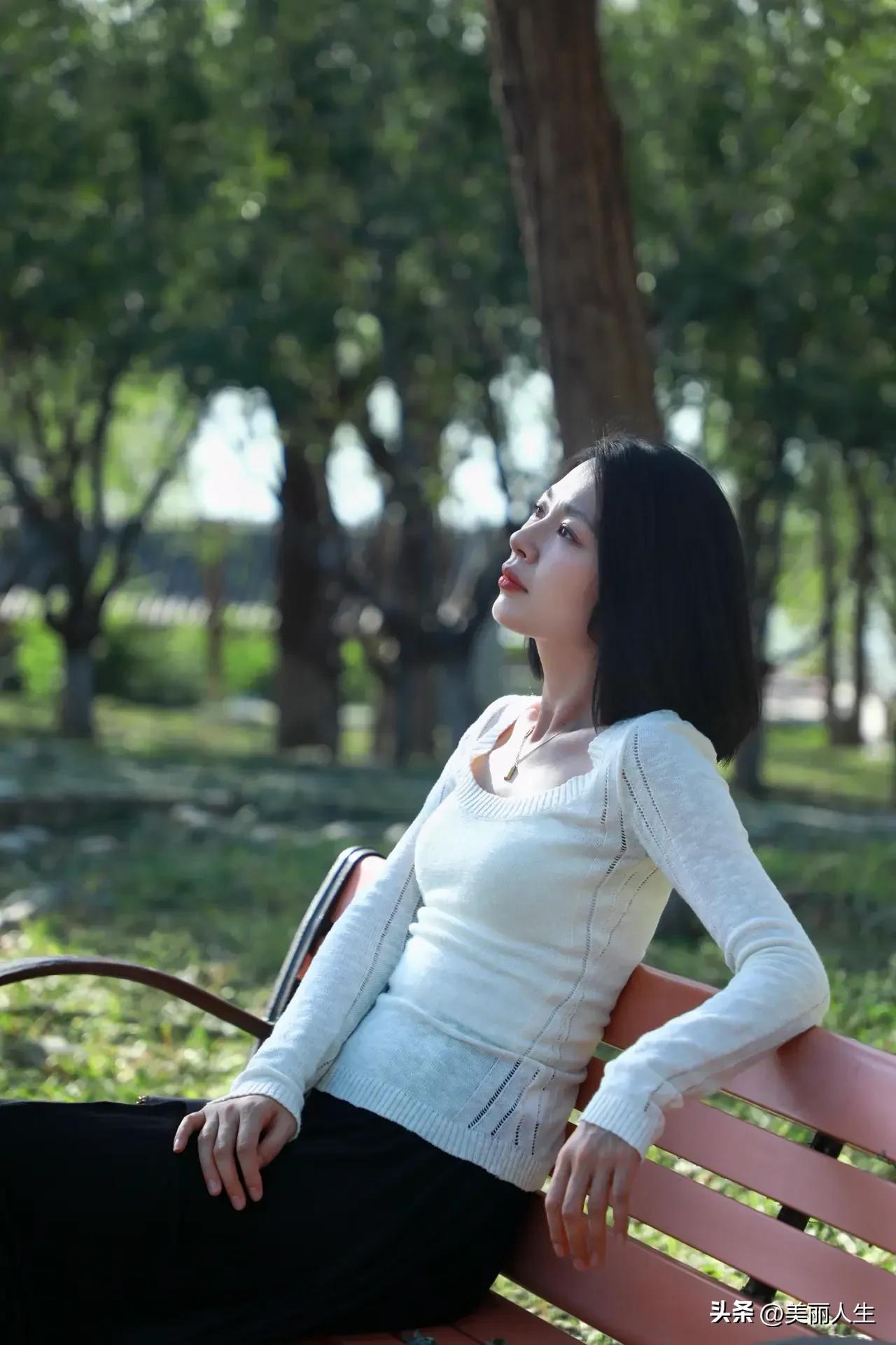阳光下的温柔侧颜,红唇与长发相映成趣。