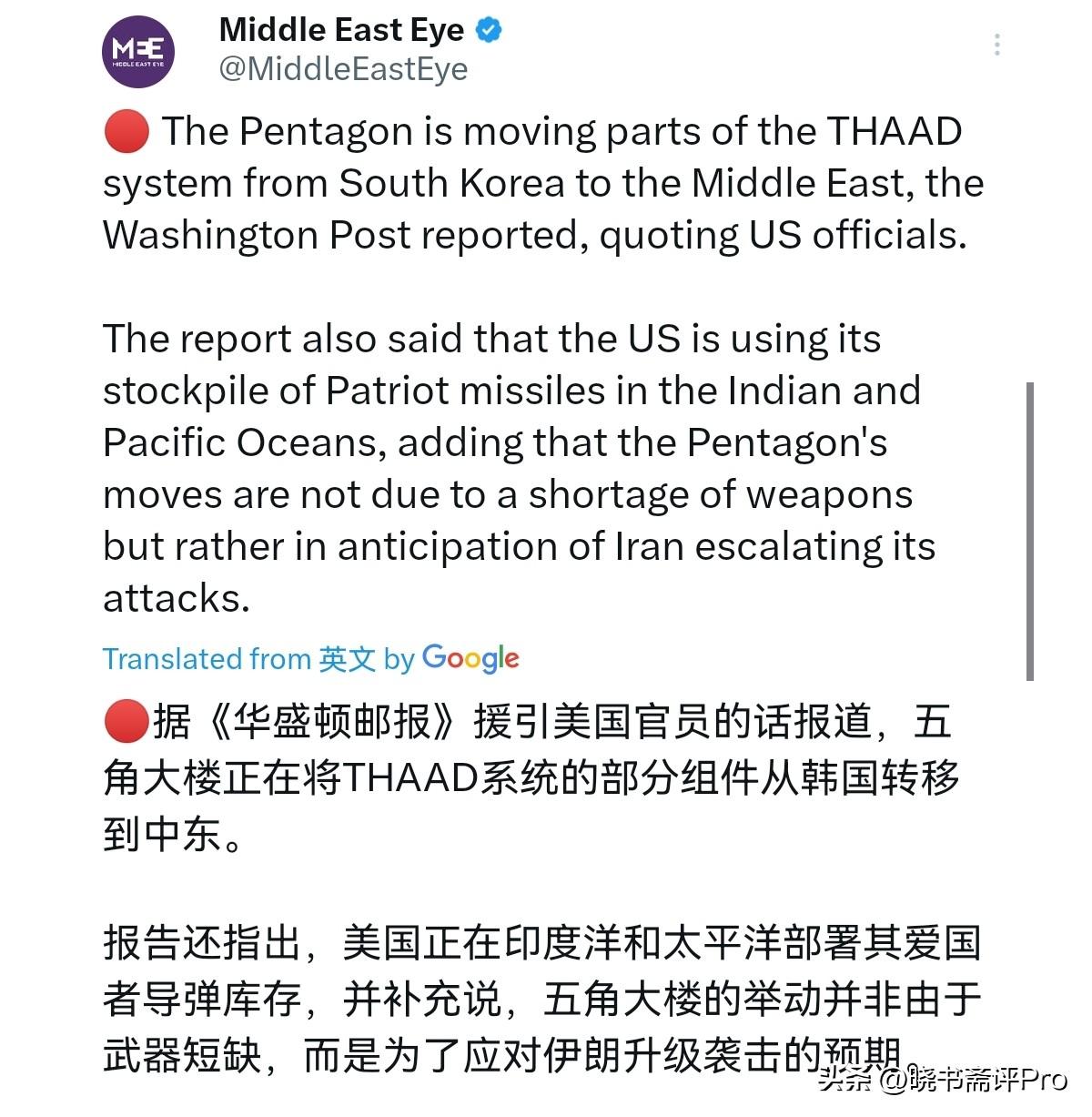 实锤了!果然正在从韩国把萨德系统抽调到中东!3月10日,华盛顿邮报援引美国官员的话报道,五角大楼正将部分萨德系统从韩国转移到中东。知情人士表示,美国正在印度洋和太平洋使用其爱国者导弹储备。当然,五角大楼嘴硬称,该举动不是由于武器短缺,而是预计伊朗会升级袭击。 说实话,以预计伊朗会升级袭击掩盖从韩国抽调武器装备的事实,这只能说美国现在的状况非常的窘迫。明眼人都看得出来,如果不是武器短缺,储备不够充分,美国为什么要这样做呢?这不就是此地无银三百两吗?显然,美国的行为间接证明,伊朗的反击,摧毁萨德系统是真的,美国完全低估了伊朗的抵抗实力和意志。 所谓“预防伊朗升级”,不过是给武器见底、防线告急找一块遮羞布而已。当然,从战略上来说,美国此举必然引起一系列的连锁反应。一方面,萨德神话告破,美国威慑力大幅度下降。另一方面,美国一手中东,一手亚太,越来越力不从心。某种程度来说,这是美国的霸权扩张过度,以至于军力不敷使用。美国对此心知肚明,却已然无能为力。