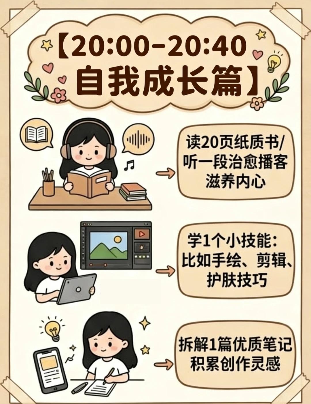 把下班后的黄金三小时,活成自己的光💫 白天我们为生活奔波,晚上才是真正属于自己的时间。不内耗、不焦虑、不熬夜刷手机,把碎片时间用来养身、养心、养气质,我们不必活成别人期待的样子,不必追赶别人的节奏。下班后的每一分温柔,都在让你变得更好。愿我们都能在忙碌的生活里,慢慢变好,悄悄发光。✨ 💡行动小贴士✅ 设立缓冲区: 下班后先别瘫着,用散步、听播客等轻松活动过渡,能有效缓解疲劳,重建能量。✅ 让行动领先于感受: 不要等有感觉了再开始。告诉自己“只做五分钟”,启动了再说,关键在于先动起来。 在轻养生 好习惯养成 爱自己 自我提升 养生 健康生活 成长 下班后的别样生活 下班后的别样精彩