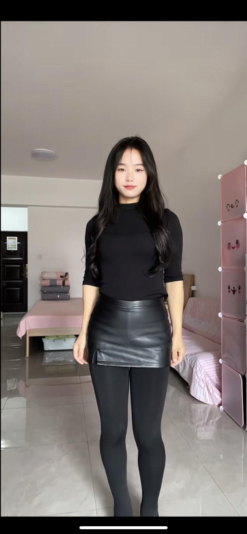 简约黑皮裙穿搭,尽显时尚魅力!