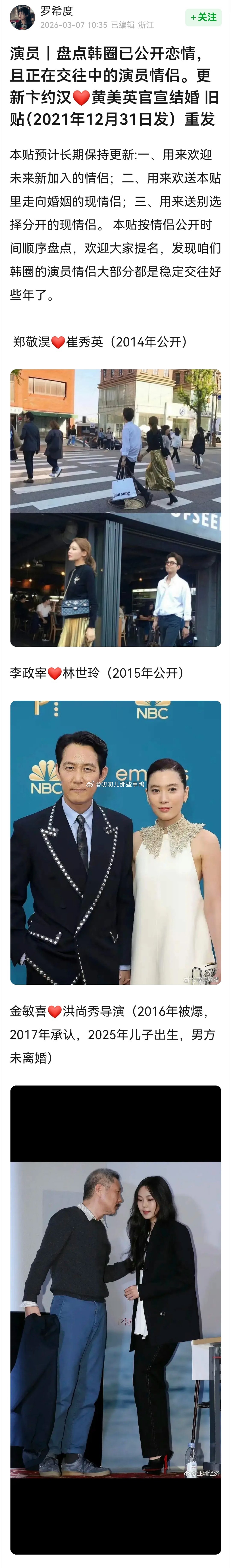 搬→盘点韩圈已公开恋情,且正在交往中(或者已分手)的演员情侣~👫👫