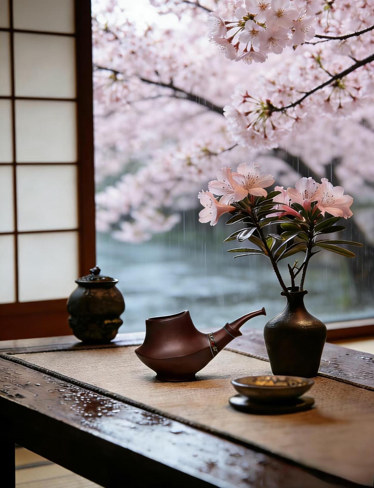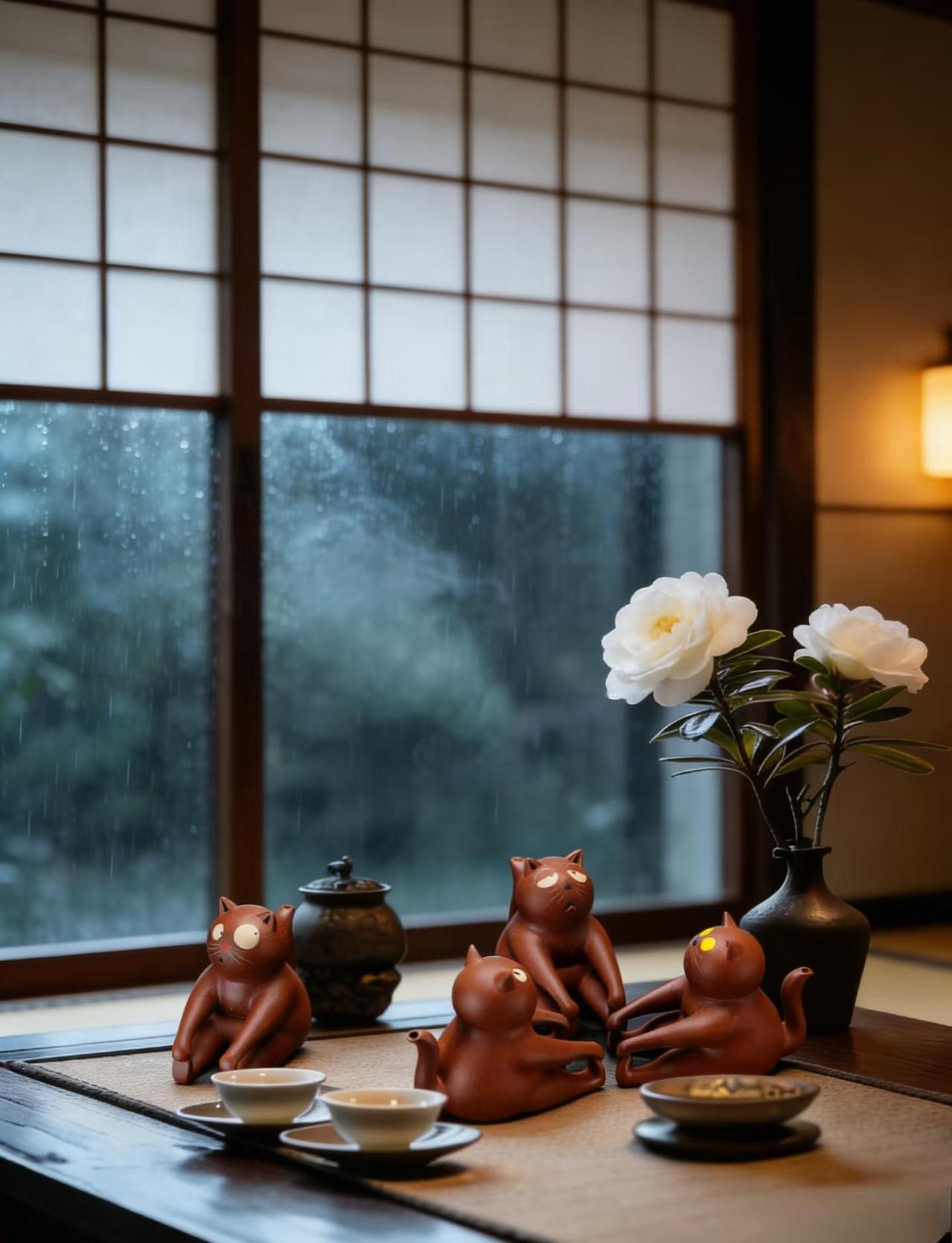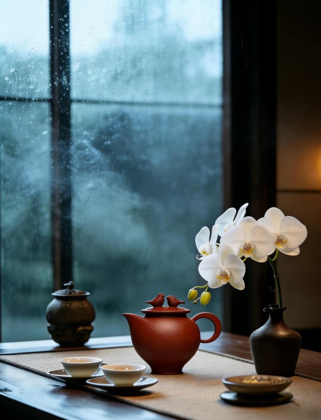 雨天,是茶室最美滤镜|听雨喝茶才是正经事 下雨天,世界好像被按下了静音键。 檐下雨帘,茶烟袅袅, 窗外雨打芭蕉,屋内水沸煮茶。 这种天气最适合把节奏放慢, 泡一壶老茶,听雨声、赏雨景。 插一枝应季的花, 青苔、菖蒲、枯枝, 随意入瓶都是东方美学的写意。 茶香在湿润的空气里格外温柔, 一口热茶入喉, 寒意散去,心安下来。 突然就懂了古人为什么爱“听雨”—— 不是寂寞,是享受这份天地间的清静。 你们那里下雨了吗? 今天,记得给自己一杯茶的时间。 雨天快乐 茶系慢生活 东方美学 茶空间 听雨 插花 禅意生活 家居美学 治愈系