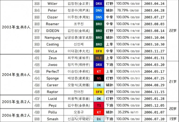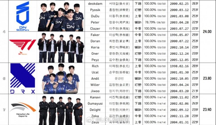 网友统计了2026年LCK选手年龄,96年选手仅剩Faker一人,DK上单Siwoo、BFX下路Diable两位07年小将;战队平均年龄GEN达到了25.2岁,DK战队的平均年龄仅有20.8岁。
