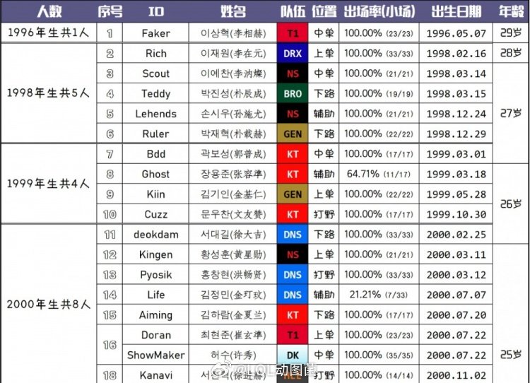 网友统计2026LCK选手年龄:96仅剩Faker;GEN平均年龄25.2