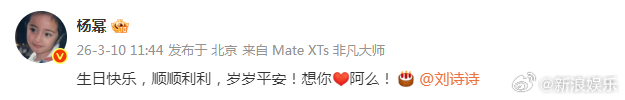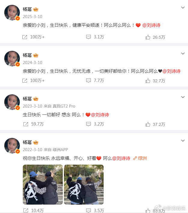 杨幂连续五年为刘诗诗庆生杨幂卡点1144为刘诗诗庆生 刚刚,发文为庆生:“生日快乐,顺顺利利,岁岁平安!想你阿么!”诗幂友谊久久!