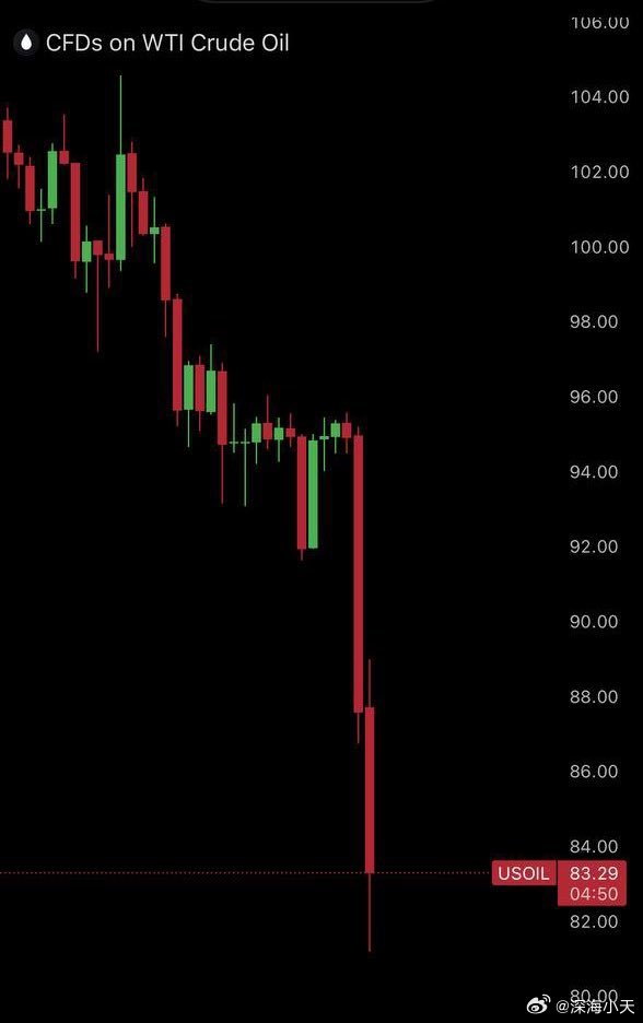 到了周一,美国油价不仅悉数回吐周日期货市场,原油价格暴跌32%,从每桶119美元跌至81美元。特朗普称若伊朗阻断霍尔木兹海峡美将猛烈打击特朗普称战争已基本结束