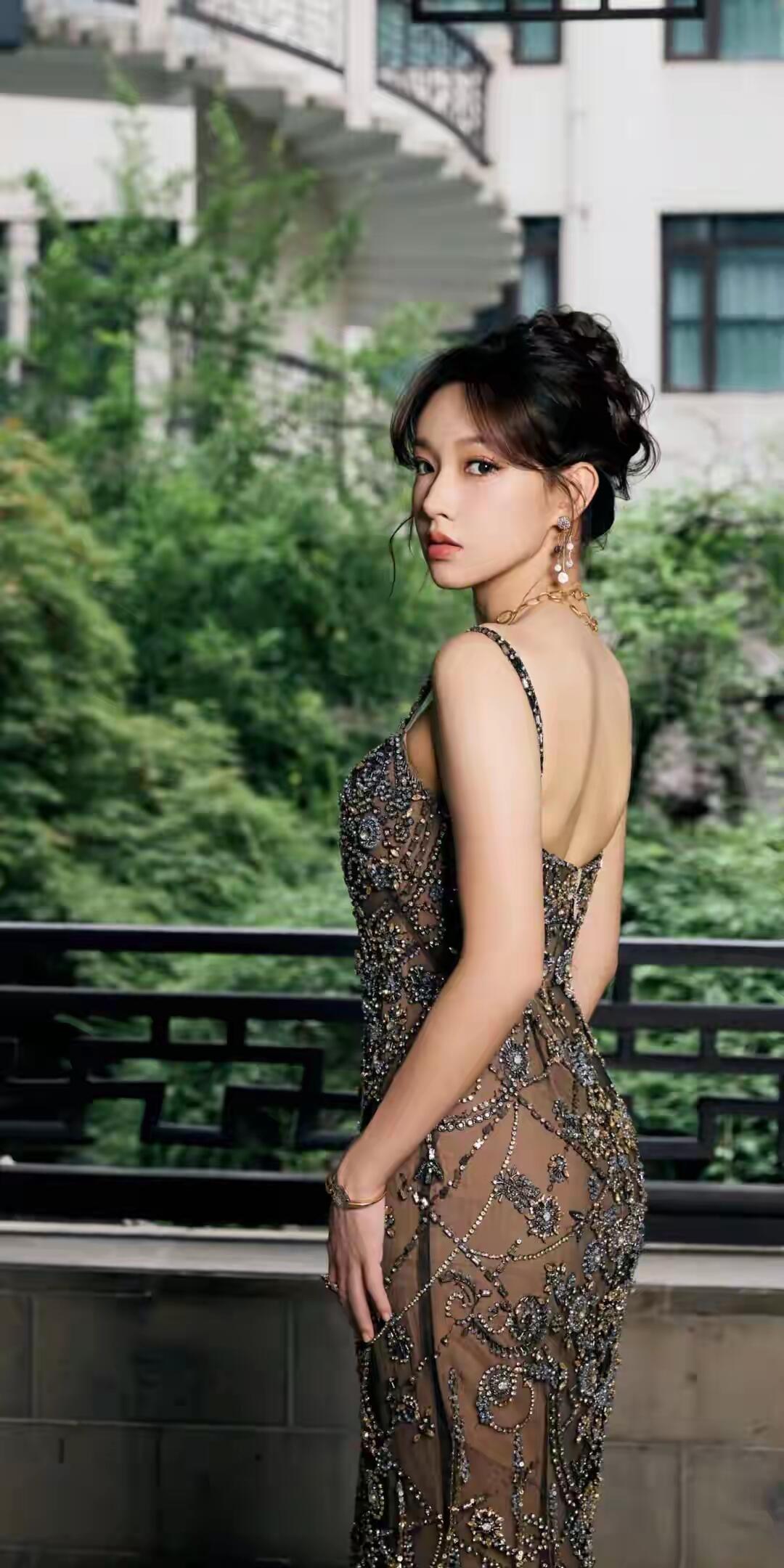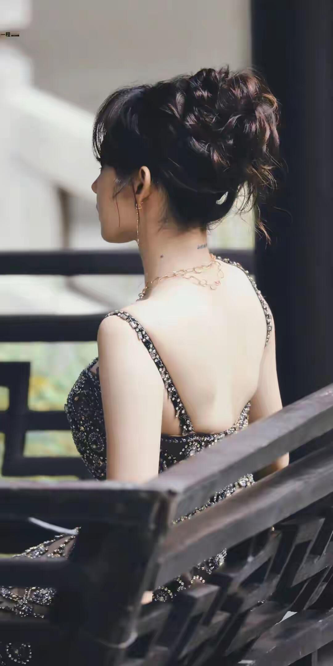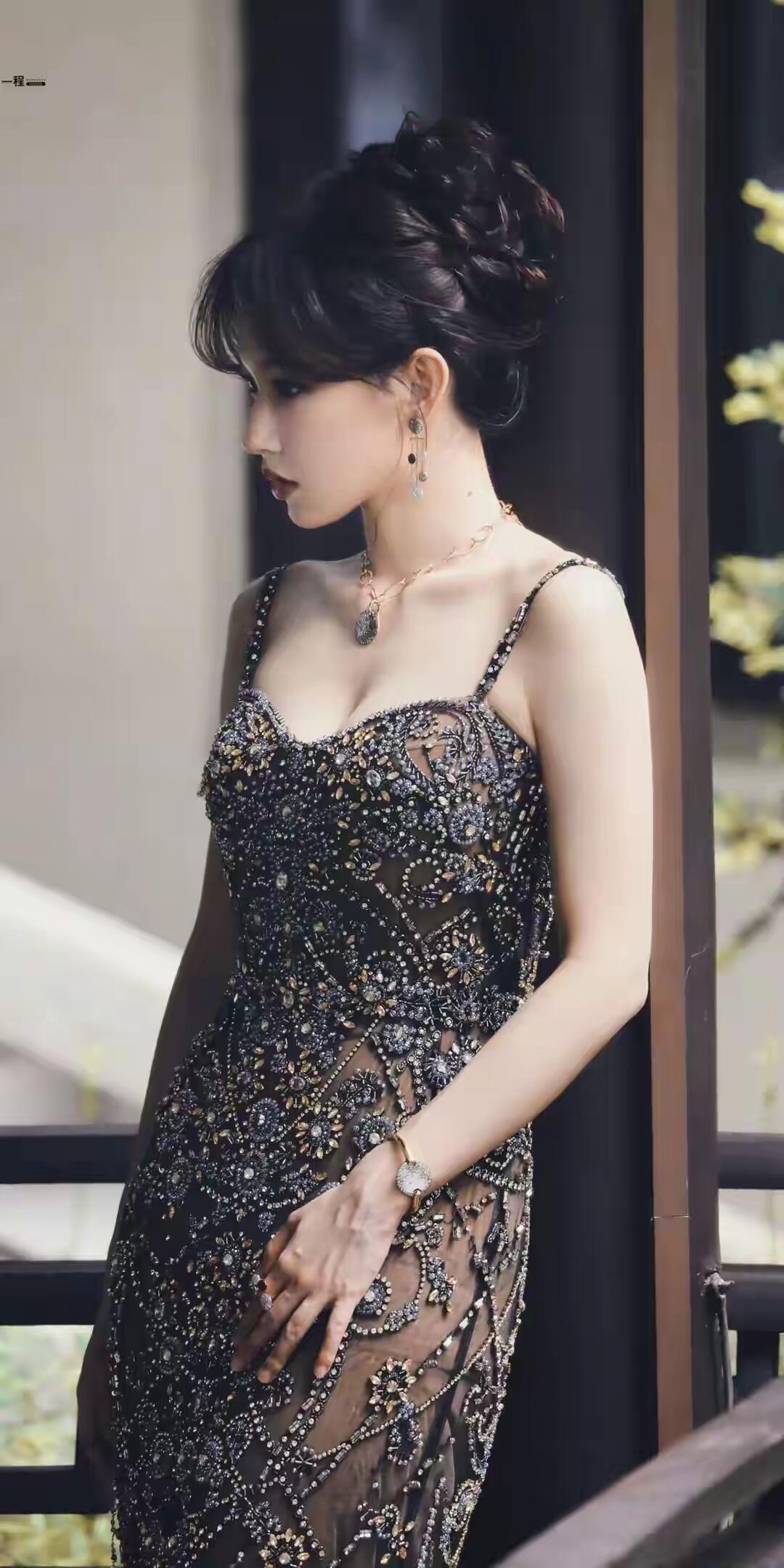 景甜黑色薄纱深V礼服惊艳亮相,充满女人味