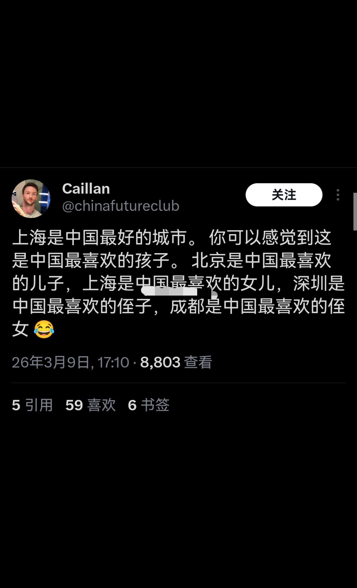 外国网红在网上发文表达他对中国城市的看法:中国最被高估的城市有,香港、台北、重庆。 香港看起来破败不堪、物价昂贵,基础设施匮乏。 台北感觉不如二线城市拥有的现代化,没有那种先进感。 重庆市中心的区域比较小,其他地方则比较破败,虽然有趣,但名过其实了。 而相比于以上几个中国城市,上海是中国最好的城市,其次是北京,再次就是深圳和成都,这几个城市都比较好。