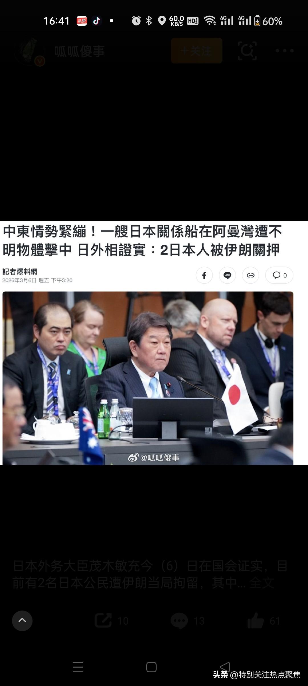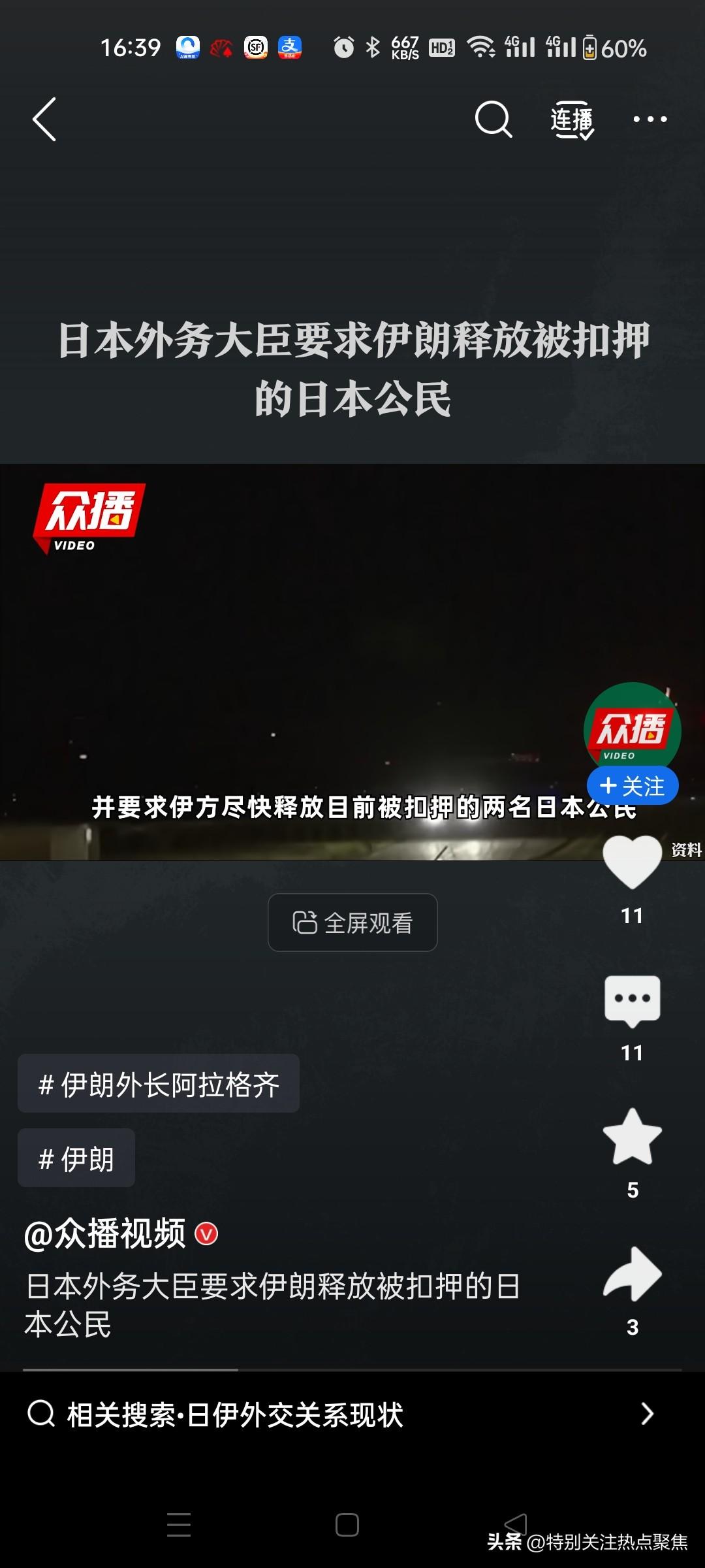 日本政府要求伊朗释放两名被扣押公民,其中一人是NHK驻德黑兰分社社长川岛慎之介,另一人身份未公开,事件发生在中东军事冲突升级的敏感背景下。 @风闻社区13领事闲谈呱呱傻事风闻社区 ⚠️ 1. 事件核心进展 扣押人员身份与时间: 川岛慎之介:日本广播协会(NHK)德黑兰分社社长,1月20日被伊朗伊斯兰革命卫队逮捕,2月23日被转移至德黑兰埃文监狱。@寰亚SYHP23 另一名日本人:日本政府未公开其身份,仅透露其被拘留时间早于2月28日美以军事行动,去年6月起已被扣押。5 日本外交行动: 外相茂木敏充3月6日首次公开确认两人安全,并于3月9日与伊朗外长阿拉格齐通话,谴责伊朗袭击海湾民用设施、威胁霍尔木兹海峡航行安全,要求立即释放公民。@环球时报20 日本通过驻伊使馆提供领事支援,并称已与两人取得联系。@呱呱傻事5 🌍 2. 地区冲突背景与敏感点 美以军事行动影响: 2月28日,美以对伊朗发动军事打击,伊朗随后进入最高战备状态,加强对外籍人员审查。日本强调第二名公民在空袭前已被拘,试图与冲突切割,但伊方未回应。 @包容万物恒河...16 日本的外交困境: 能源依赖:日本96%的原油进口依赖中东,74%需经霍尔木兹海峡,若航道封锁将冲击能源安全。 同盟关系制约:日本需平衡美日同盟与对伊能源需求,首相高市早苗回避批评美以行动,仅敦促伊朗停火,引发伊方不满。衝鋒号角 🕵️ 3. 外界推测与争议焦点 拘留原因疑云: 川岛被关押在埃文监狱第七支部(专门收押国安案件嫌疑人),且由伊朗革命卫队(非普通警方)实施逮捕,暗示案件涉国家安全。 历史案例显示,伊朗逮捕外国记者多涉间谍指控(如2014年《华盛顿邮报》社长),且调查期较长。 日本延迟披露遭质疑: 川岛1月被捕,日本政府3月才公开,被指可能因"自知理亏"(如记者涉敏感活动)而低调处理。 ⚖️ 4. 后续应对与潜在影响 撤侨预案启动: 日本将伊朗等六国旅行警示升至三级(第二高级别),防卫省协调航空自卫队运输机待命,拟通过海陆空多通道撤离约200名在伊公民。 能源与外交双重压力: 若伊朗持续拒绝放人,日本可能联合西方施压,但强硬行动或加剧能源供应风险。目前伊方未公布指控细节,也未回应日方要求。 注:伊朗未公开拘留依据,且日本未解释公民涉何具体活动。事件折射日本在中东"能源安全-同盟义务-公民保护"间的艰难平衡。伊朗高层出逃 伊朗情报人员 伊朗叛徒 伊朗反谍行动 伊朗撤离行动 伊朗处决6人 伊朗华人撤离