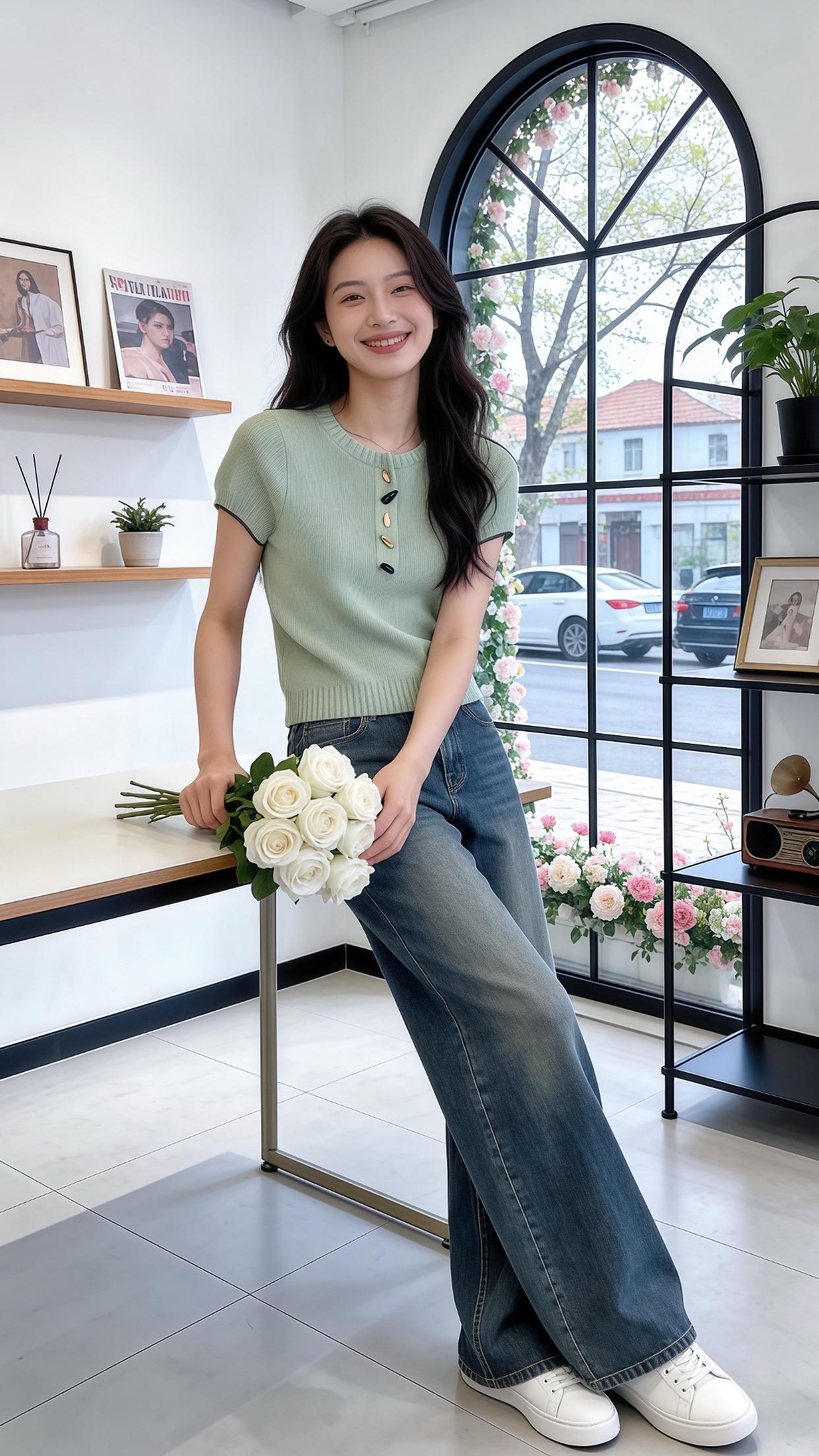 刘浩存用自己证明:修身裤比宽松裤好看太多。