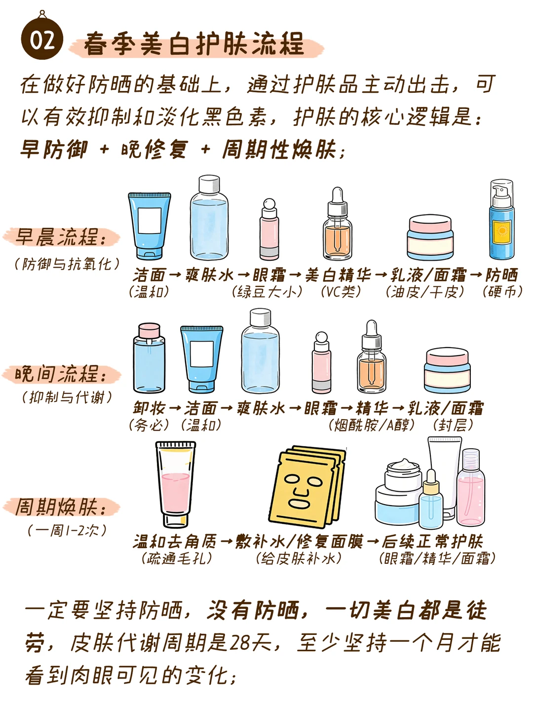 春天的气温不冷不热; 皮肤既不会像冬天那样因为干燥寒冷而变得敏感脆弱; 也不会像夏天那样因为高温而出油爆汗; 在皮肤状态稳定、新陈代谢旺盛的春天; 坚持“养白白”; 技能有效改善冬天的暗沉; 同时为即将到来的夏天建立坚固的防护基础;