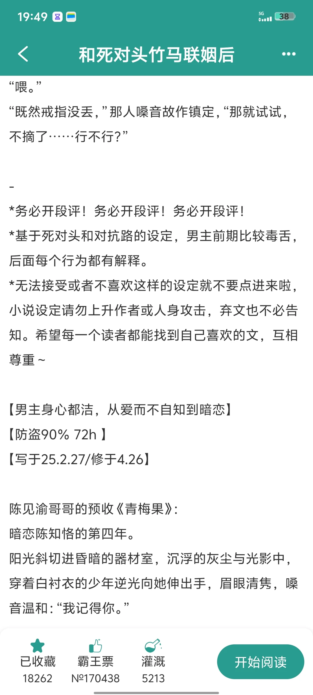 《和死对头联姻后》by亦聆 马上完结的小说,可入 [绿色心形R]男主是毒舌腹黑但深情那挂的,表面跟女主对抗路其实一直在为女主付出,没人比他更在意女主,女主以为的商业联姻其实是他的蓄谋已久。 [黄色心形R]骗女主自己也被停卡了才不得不联姻,结果婚后占有欲超强超粘人,各种黏老婆,还特别会吃醋,看见女主副驾坐别的男人都会嫉妒得发狂,女主说要离婚直接气疯化身阴湿男,超刺激超好看!快冲!