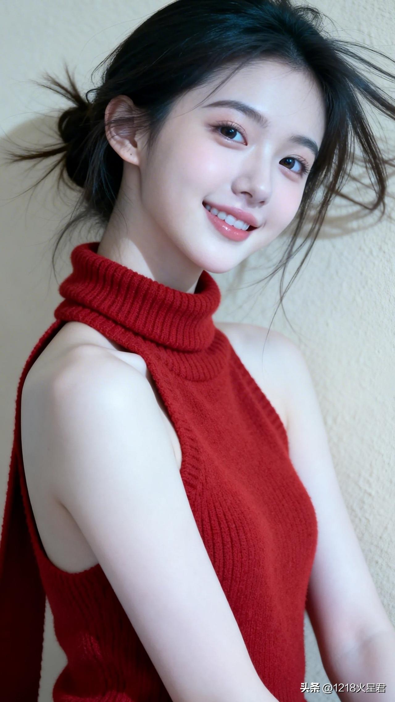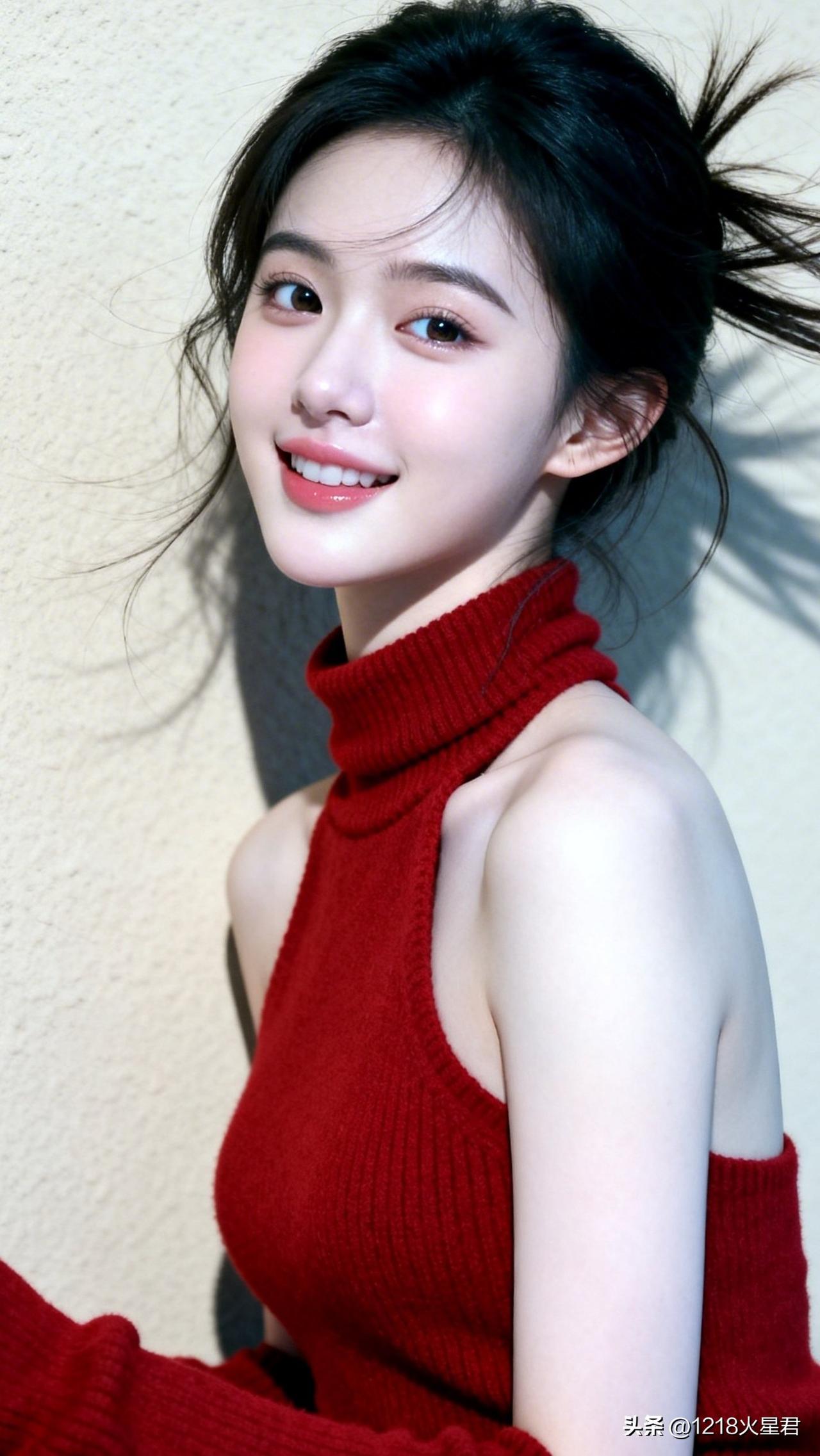 甜美少女,红裙飘逸,阳光下的动人微笑🌞✨美少女的微笑 红衣少女自拍