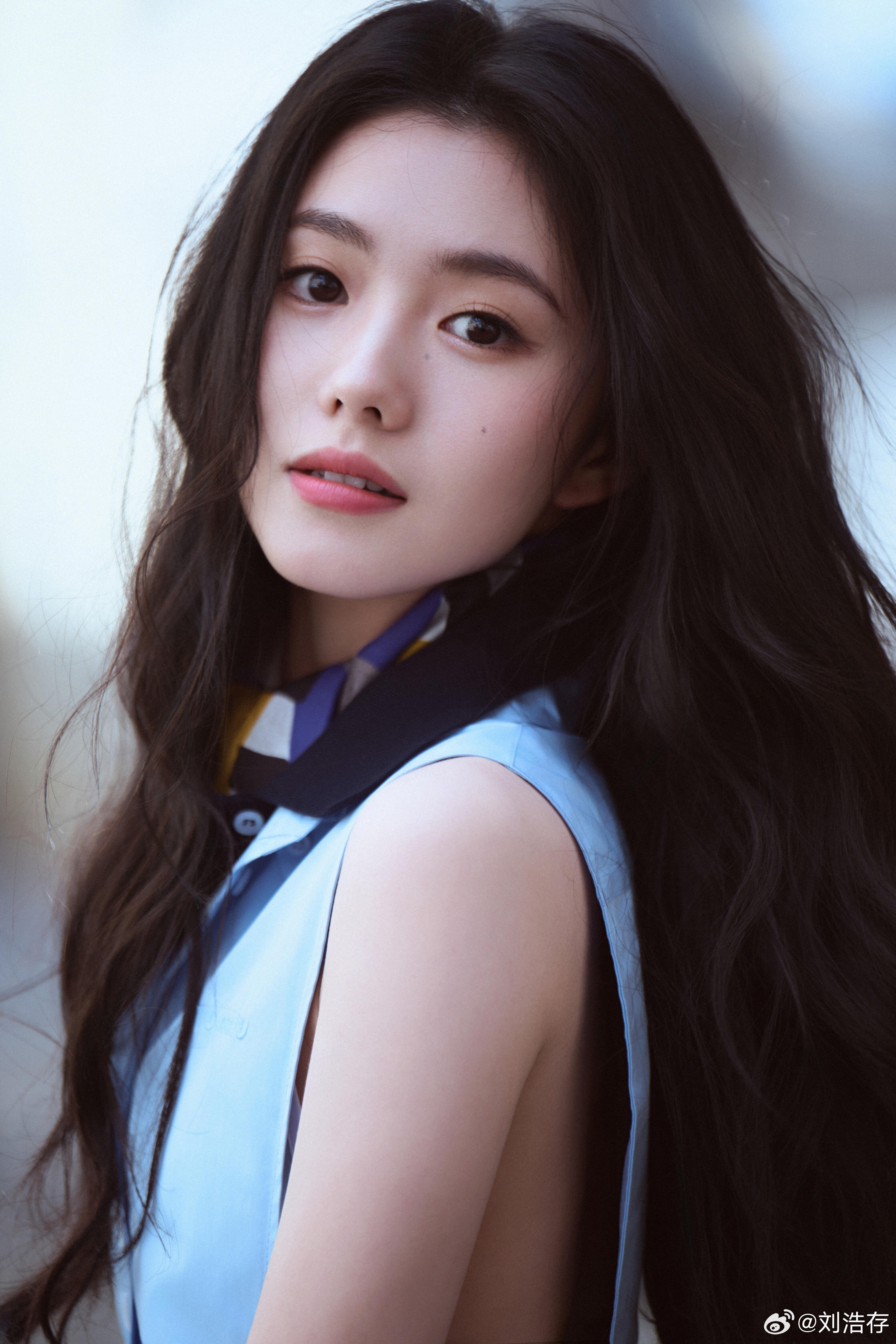 品牌大使刘浩存,浅蓝无袖裙搭配复古Vivant手袋,灵动甜酷,青春洋溢。微博在现场巴黎时装周
