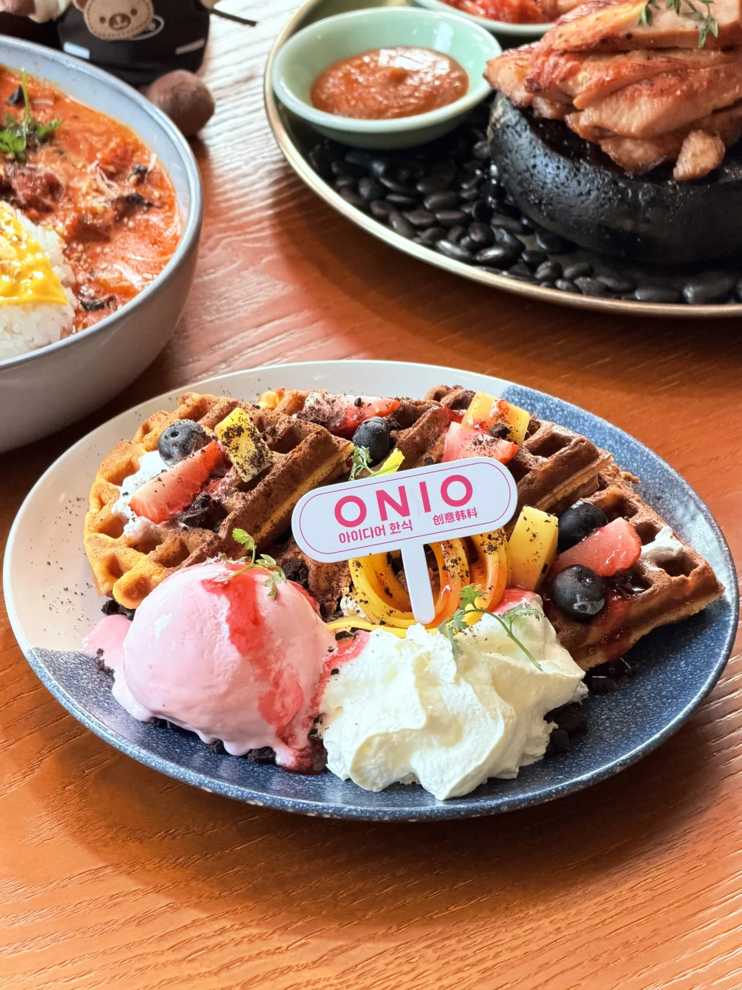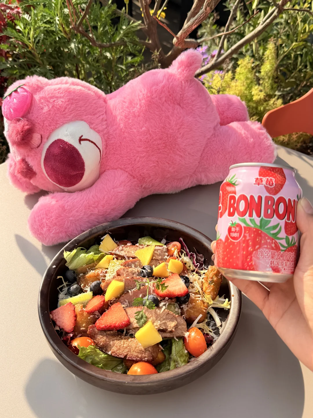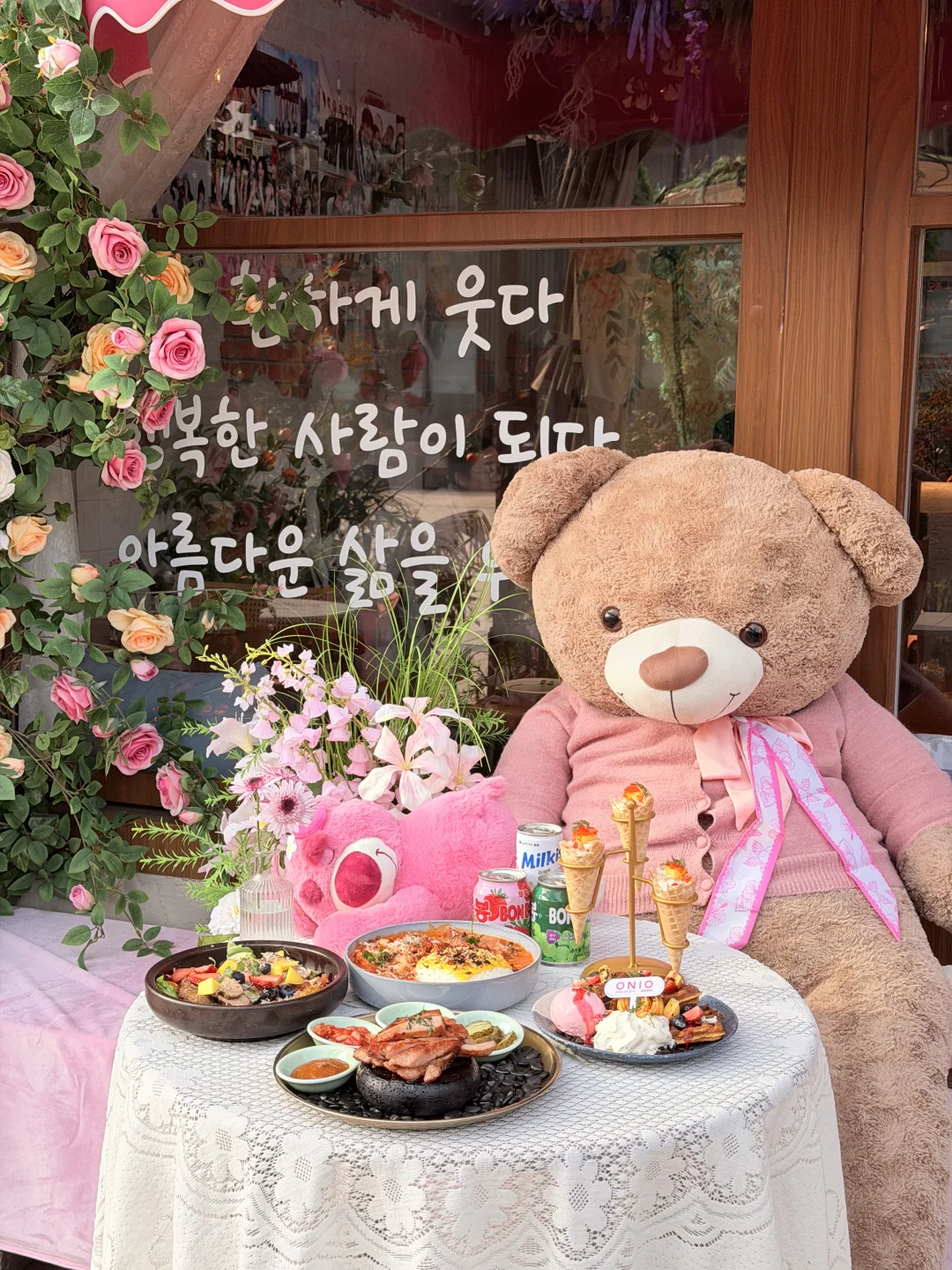 充满鲜花的世界到底在哪里 如果它真的存在那么一定在玄武湖 樱花🌸郁金香🌷茶花🍵月季🌹 还有一扇开满鲜花的玻璃窗🪟 满墙海报、木质酒柜、韩剧同款维尼熊🐻 到处都韩里韩气的,咔咔拍🤳📷 烤牛肉南瓜蔬果碗、韩式甜辣奶油鸡海苔饭 爆珠芒果蟹柳脆筒、时令水果冰淇淋华夫饼 烤松板肉,是漂亮又好吃的几大盘