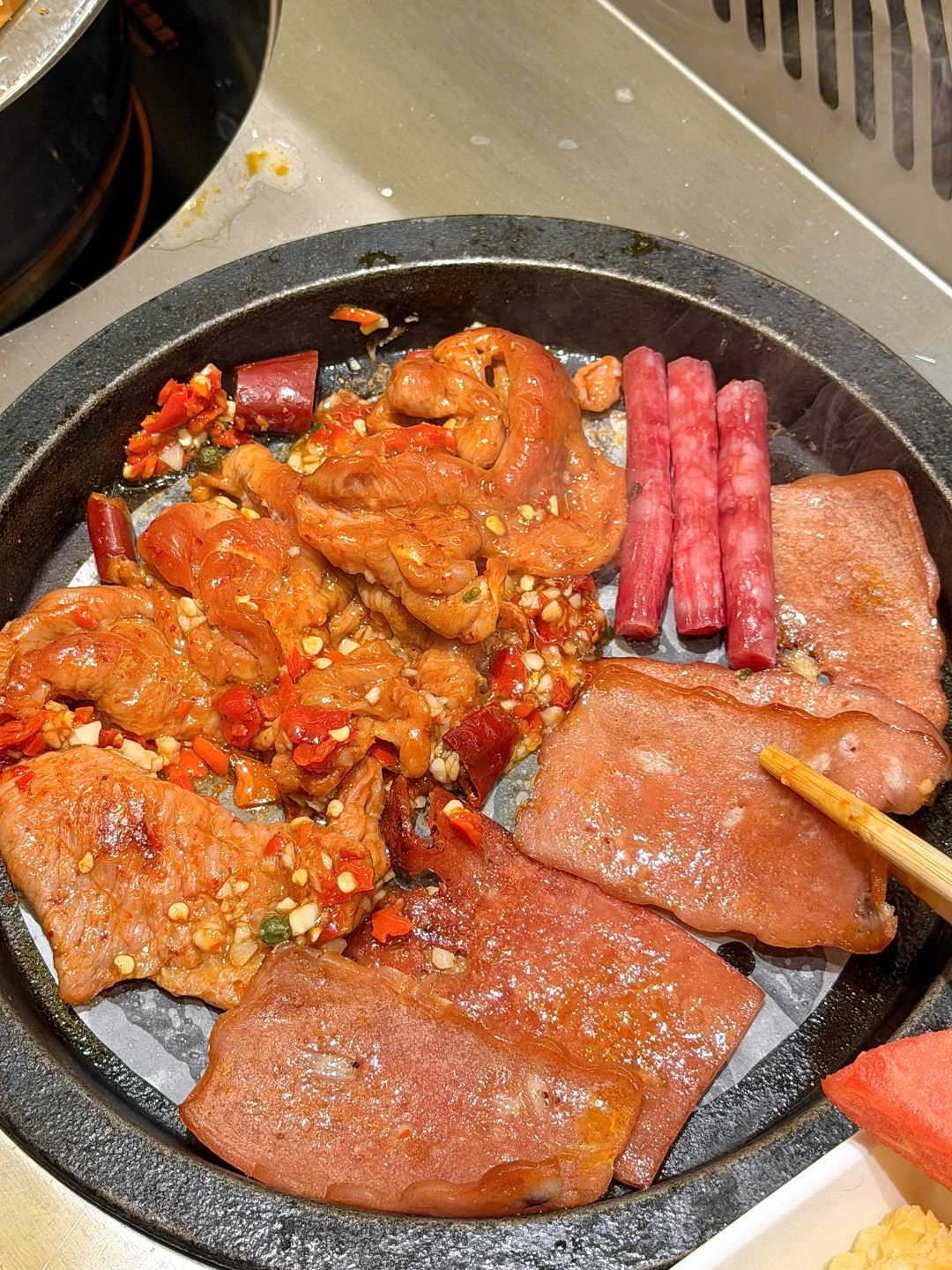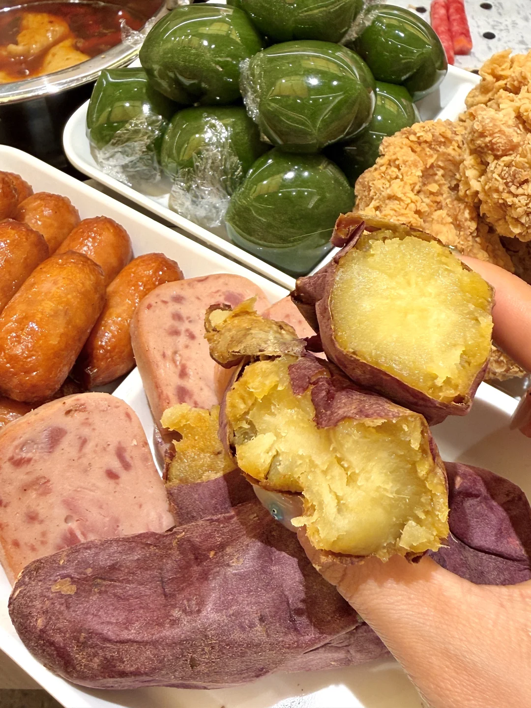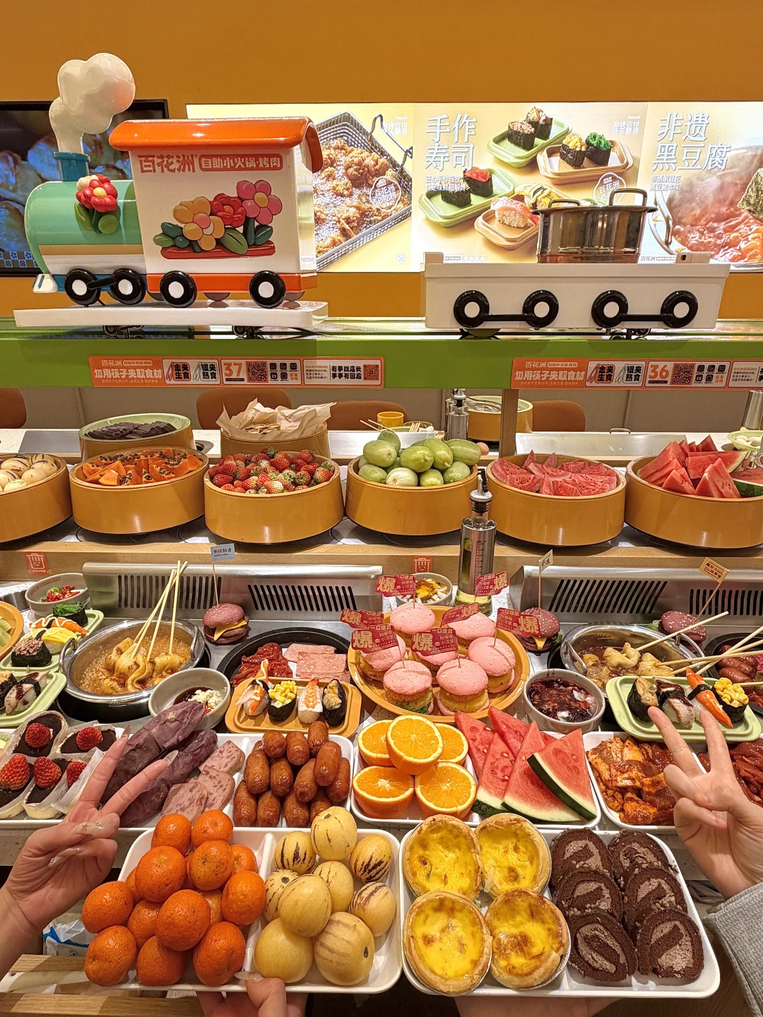 近期惊艳!一周和室友吃了不下10次! 简直是我们穷鬼的快乐屋!!! 一人一个火锅和烤肉架,菜品都有上百种~ 还有寿司🍣饮料🥤甜品,玉女黄瓜~芭乐木瓜各种水果……现烤的榴莲酥、红扑扑小汉堡、粉嘟嘟小汉堡、52良作红薯、炸鸡都是畅吃不限量的~真的稳稳吃回本! 唯一的缺点就是要早点去!饭点人很多!尊嘟恨不得自己有两个胃!特意错开饭点和姐妹一起去!吃爽了,完全是扶墙出来的(百花洲自助小火锅·烤肉