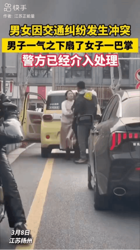 太冲动了!再有理,也别动手!一巴掌,毁了自己! 刚才刷头条,江苏扬州“男子因交通纠纷怒扇女子巴掌”上热搜榜,随后我又去搜了视频全过程,看后,真的太让人唏嘘了。 就因为一场小小的交通剐蹭,一名男子当场怒扇女司机一巴掌,看着解气,可代价,普通人真的扛不住。 事情很简单:单行道上,女司机强行超车与男子的车发生剐蹭,之后还拒不认责,男子看道路被堵死,让她先挪车,女子却不肯挪车,还脏话连篇。辅警到场都僵持不下,整条路被堵得水泄不通。 换谁遇到这种胡搅蛮缠的人,都会血压飙升,怒火攻心。男子估计也是忍到极限,才彻底爆发。 作为一个普通人,我太懂这种憋屈了。 好好开车被人撞,对方还不讲理、耽误事,谁不生气? 可动手的那一刻,再有理,也全没了。 此事在网上曝光后也引起网友们热议。 有网友说:“气得我都想动手,但理智告诉我:打输住院,打赢坐牢。” 还有网友表示:“女司机再不对,你一巴掌下去,赔钱、拘留、留案底,工作家庭全受影响。” 还有网友认为:“本来占理,现在成了过错方,真的不值!” 是啊,不值。 不讲理的人,有交警处罚、有保险理赔、有舆论评判。 可一旦动手,性质就变了。 轻则拘留罚款、赔偿大几万,重则留下案底,影响一辈子。 为了一口怒气,赔上自己的前途,太傻了。 生活里烂人烂事真的很多,不必事事较真,更不必用别人的错误惩罚自己,不值! 因此,遇事再有理也不纠缠、不动手、留证据,才是最聪明的自保。 友友们,你们觉得男子这一巴掌,打得值吗?
