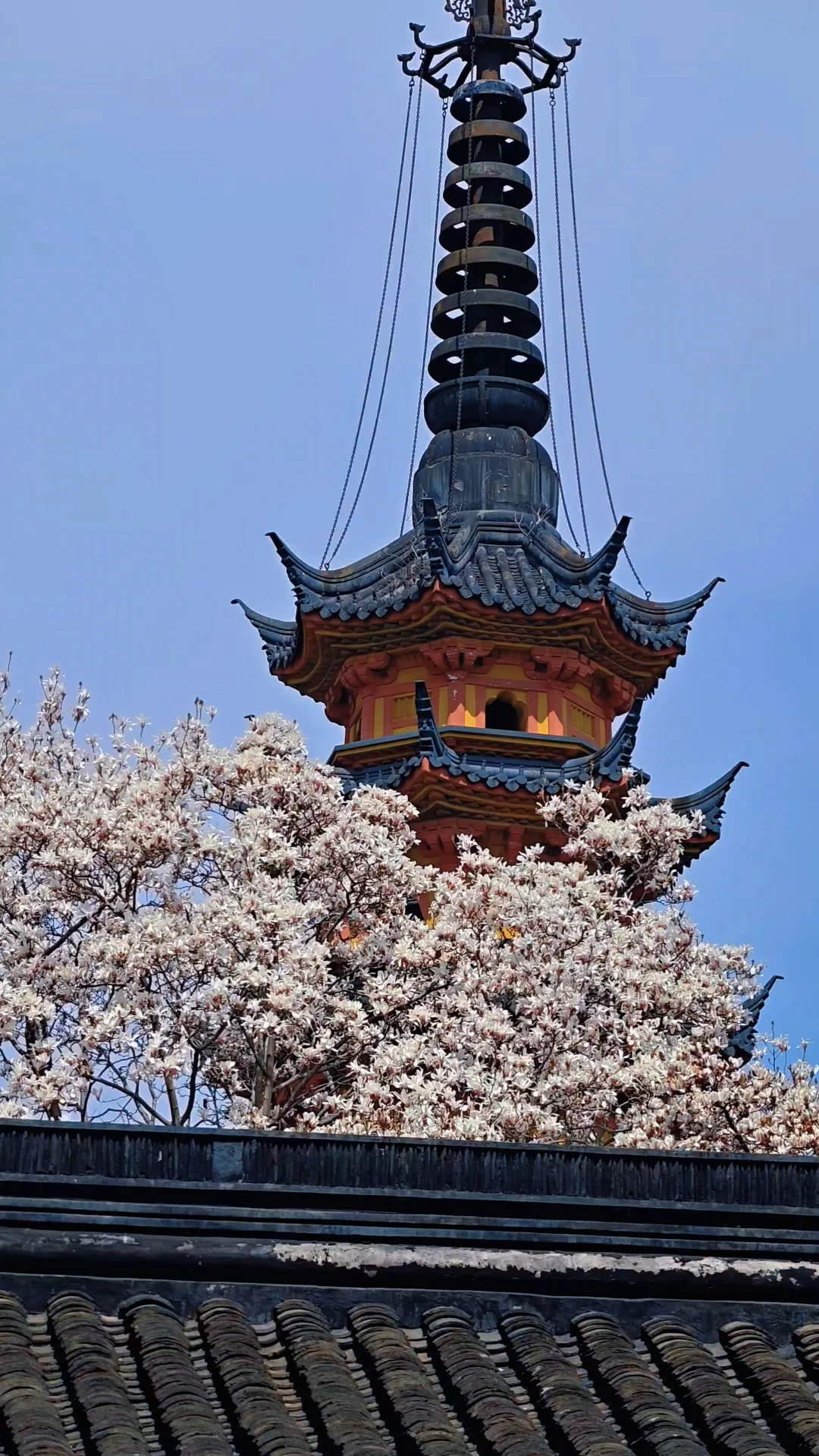 终于等到苏州的玉兰花期 定慧寺巷双塔的玉兰 是春天不可错过的“惊鸿一瞥”...... 姑苏的春寒还未散尽 双塔像两支搁置千年的湖笔 本是蘸着风雨书写沧桑 却被这两树盛放的玉兰“点染”上了温柔 站在罗汉院遗址前 看白玉兰映衬着宋代的砖塔 一瞬间就懂了古诗里的意境...... - 📍定慧寺巷 双塔 -