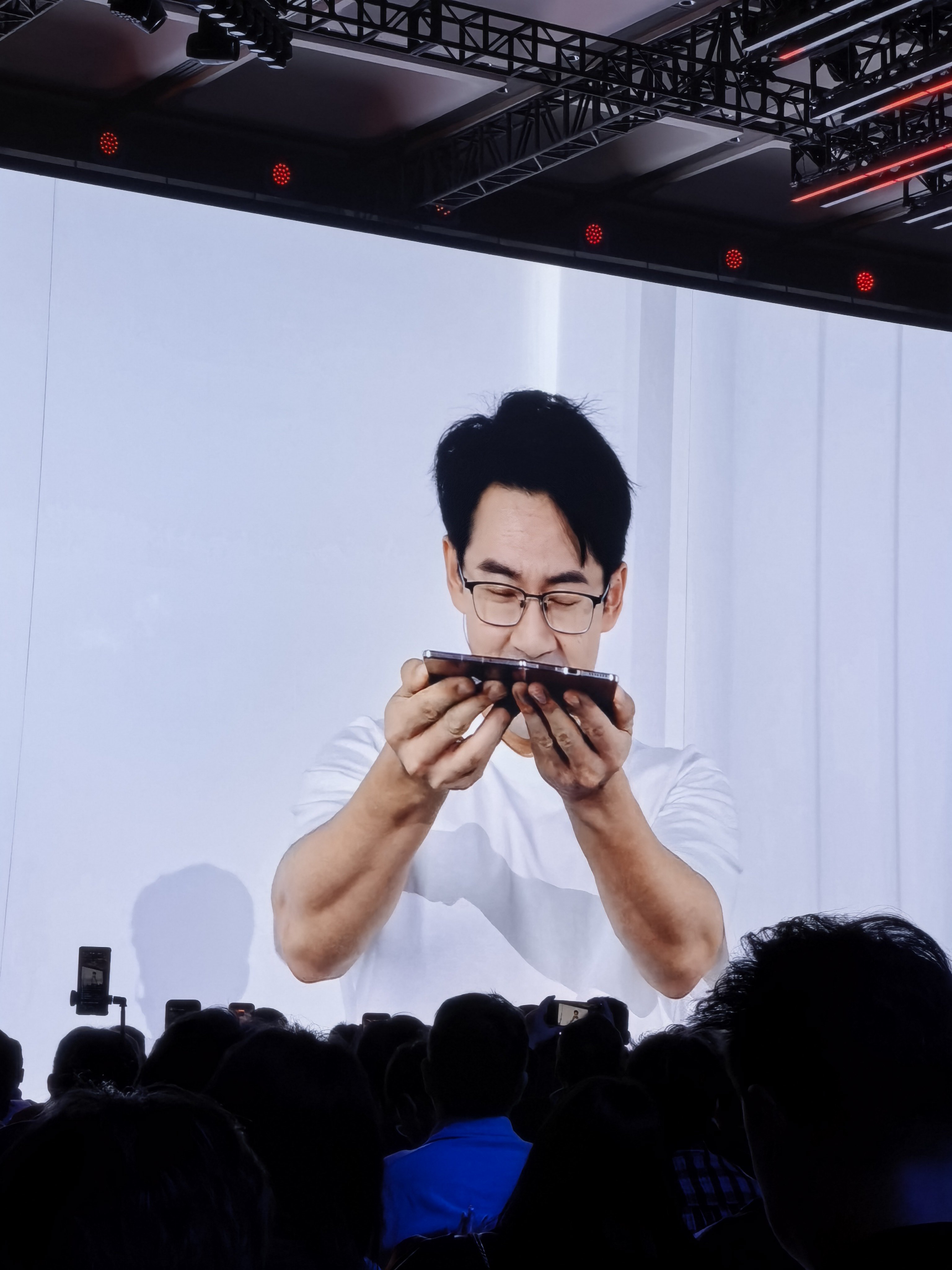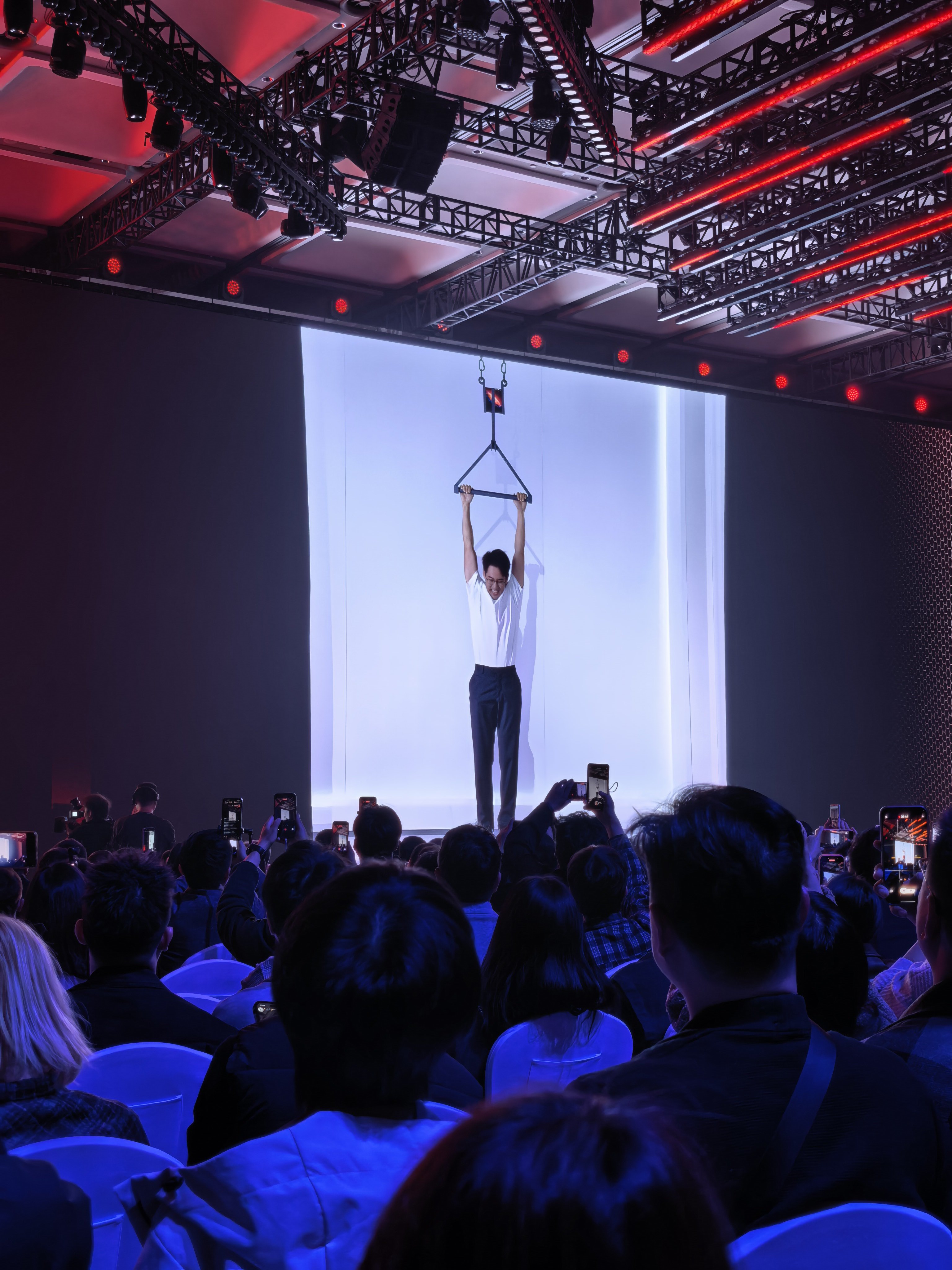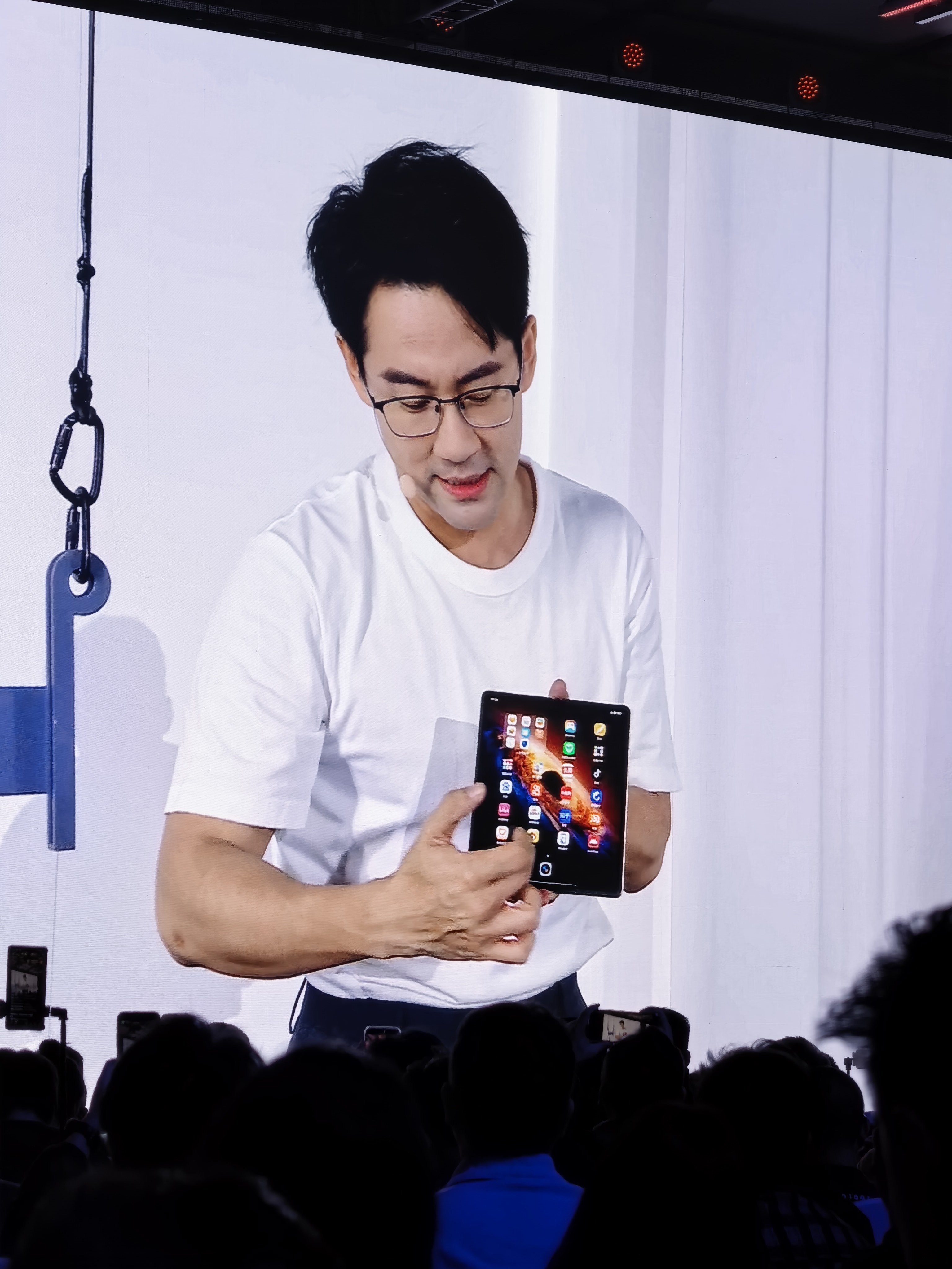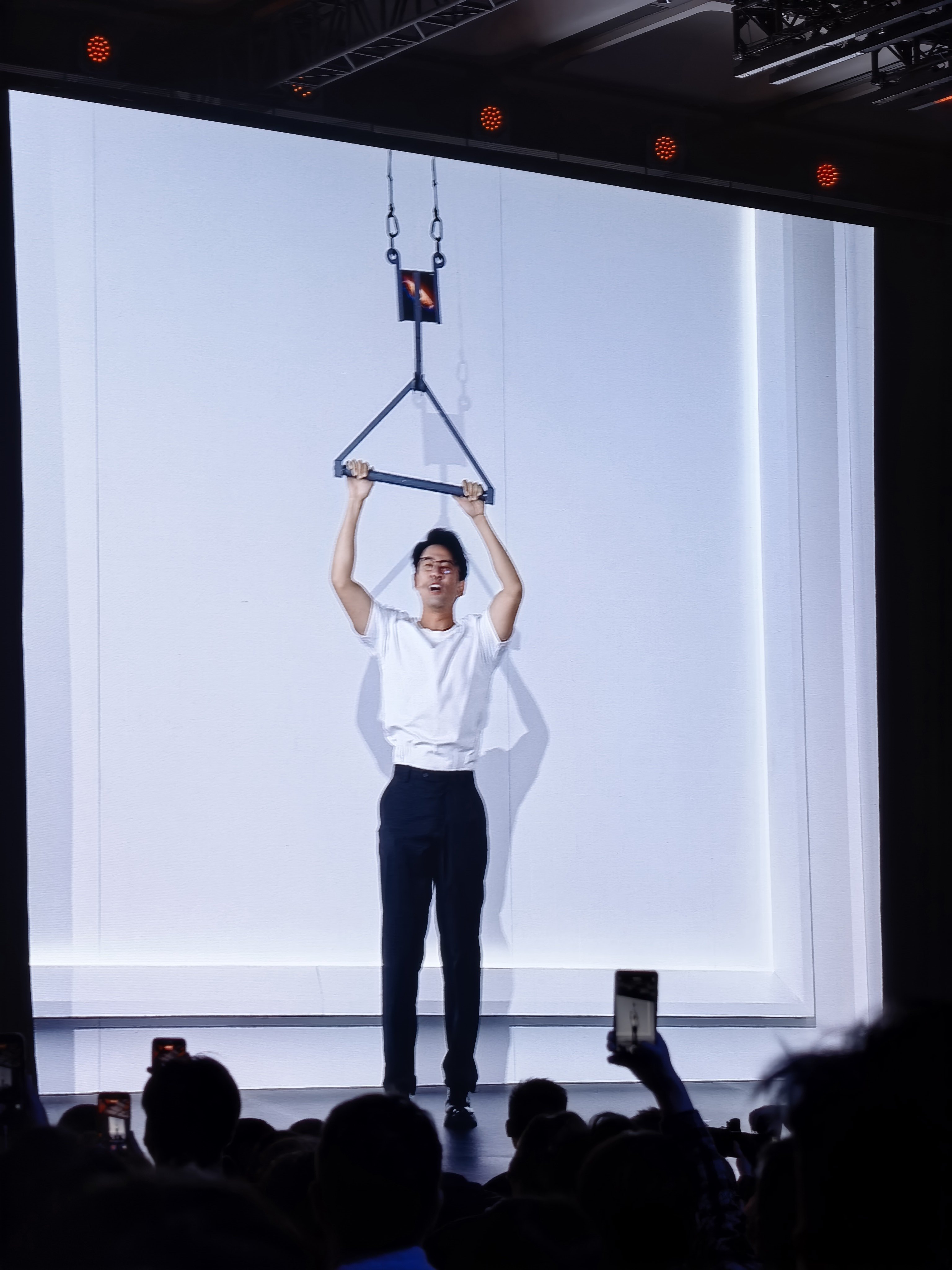 荣耀折叠屏产品经理,现场用吊着荣耀Magic V6 的杆,做引体向上,耀子花活太多了,好看爱看!