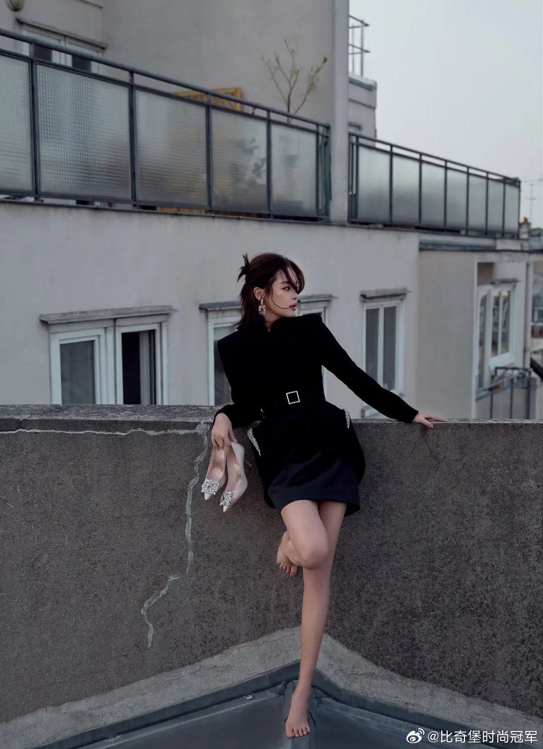 刘亦菲这条裤子挺养生,毕竟降温了肚脐眼必须护住啊