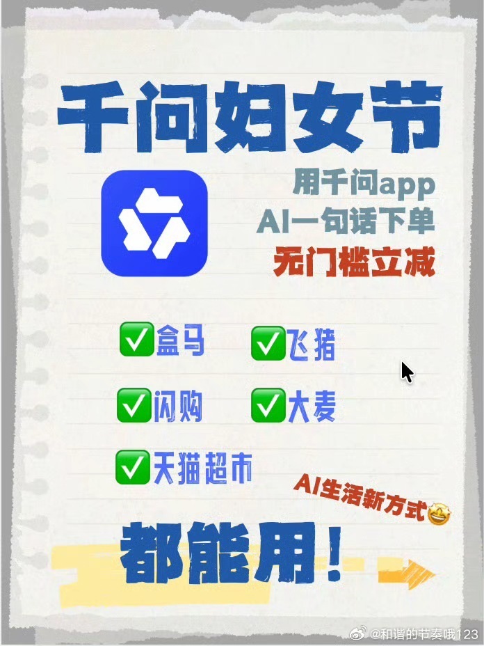 千问女孩吃上刘文祥了如果全世界都怪你,我就带你去吃刘文祥。不用你带我,我靠千问就能直达——千问领AI办事卡,一句话直接下单,无门槛立减,人人都有份。