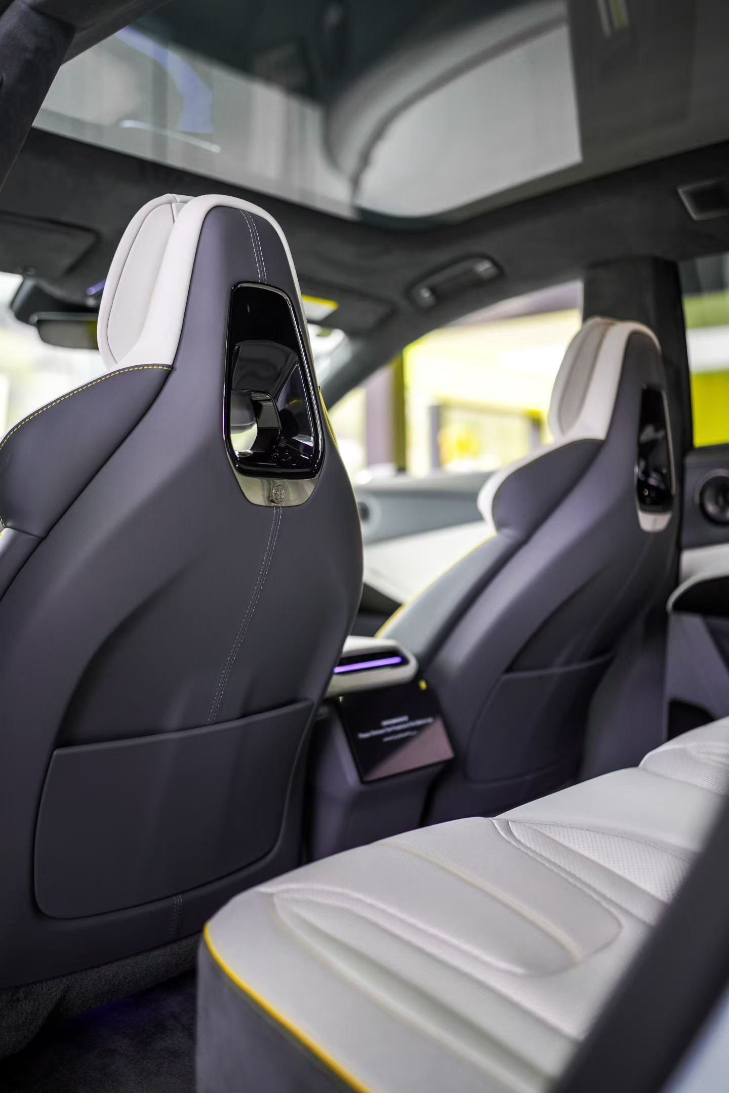性能是其最大亮点。它搭载2.0T发动机与双电机组成的插混系统,综合功率高达952马力,零百加速仅需3.3秒,即便在馈电状态下也能跑出3.5秒的成绩。其基于900V高压平台,配备70kWh电池,CLTC纯电续航最高420公里,综合续航突破1400公里,且支持6C快充,30%充至80%电量仅需8分钟。