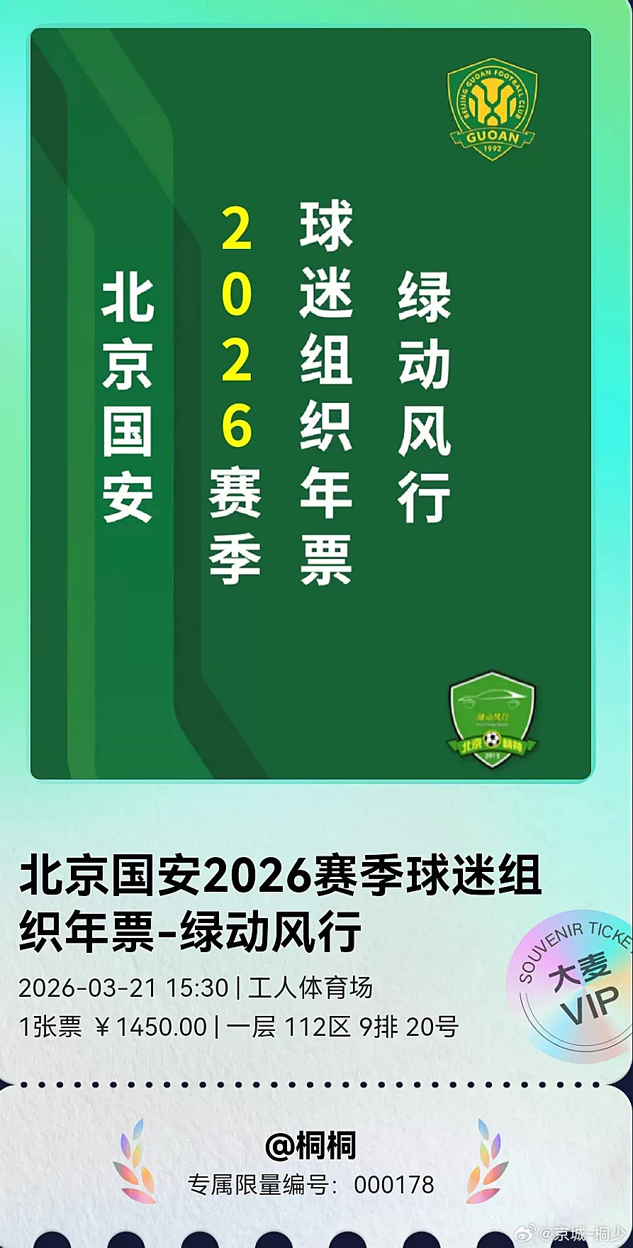 三年相守,不负热爱。2026,工体看台见!国安!国安!北京国安!✌💚足球的热爱北京国安国安套票同城热门 北京