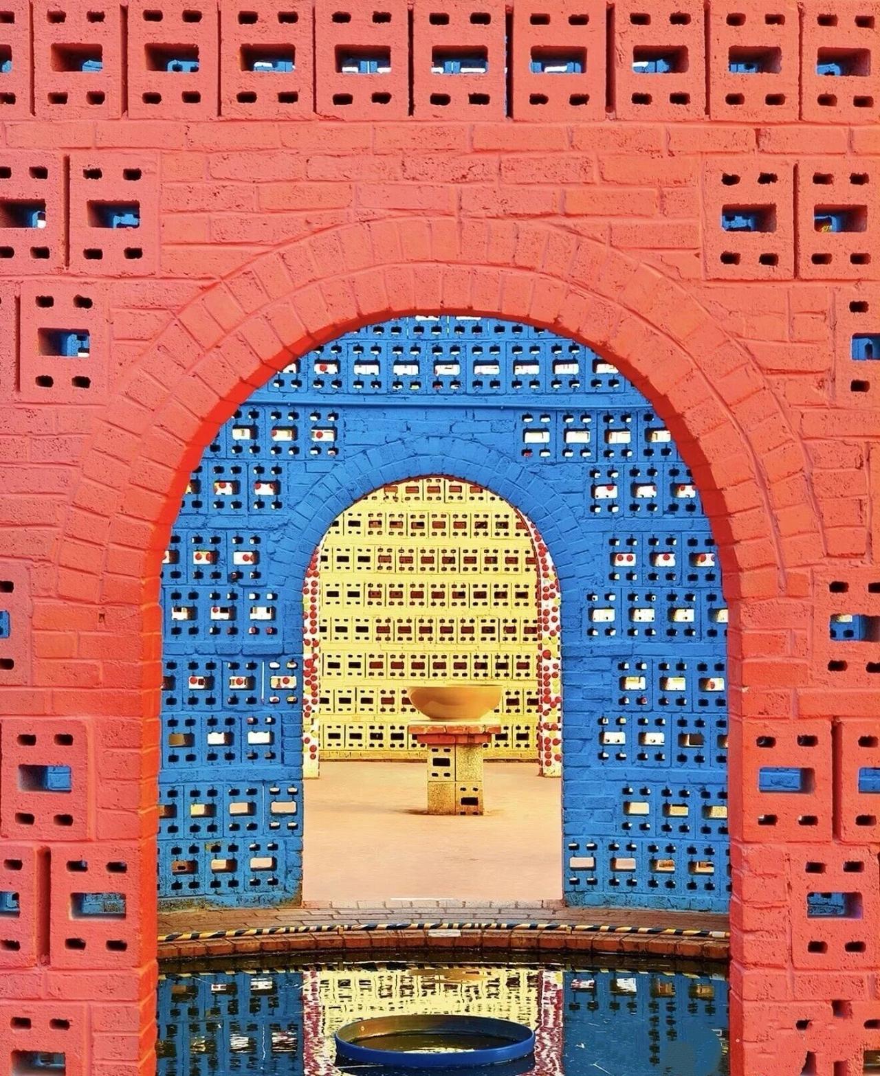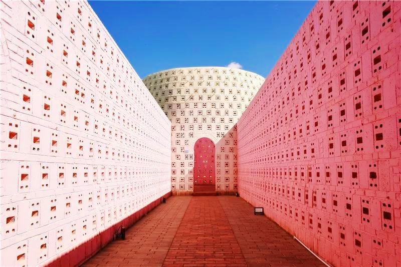 彩色空心砖几何建筑群,融合建水紫陶文化