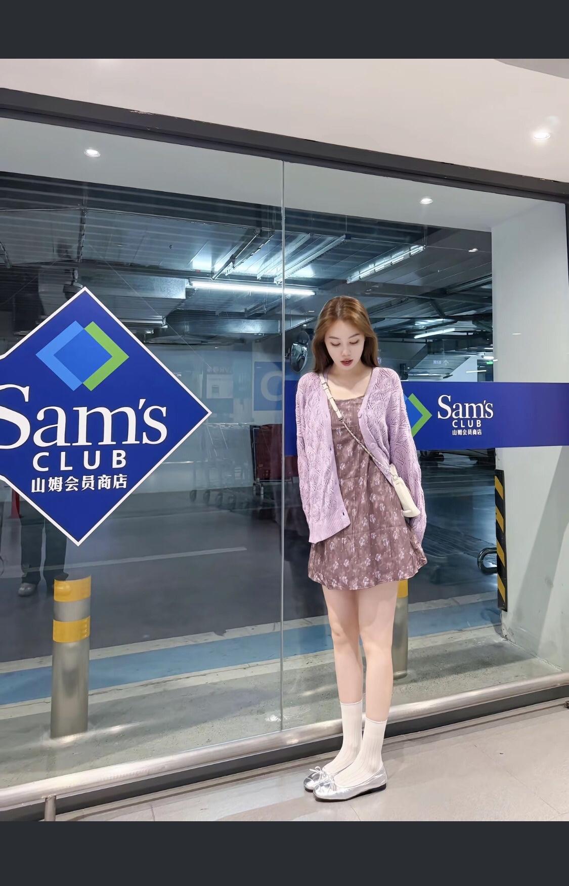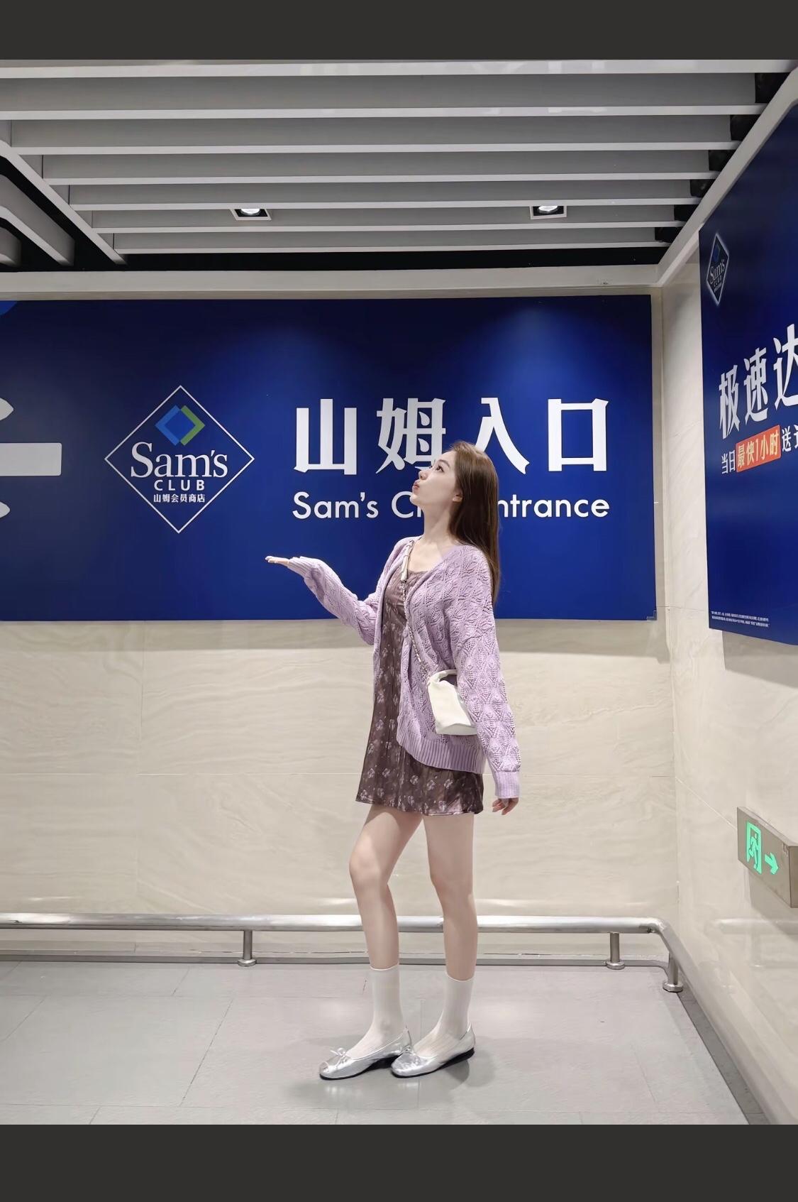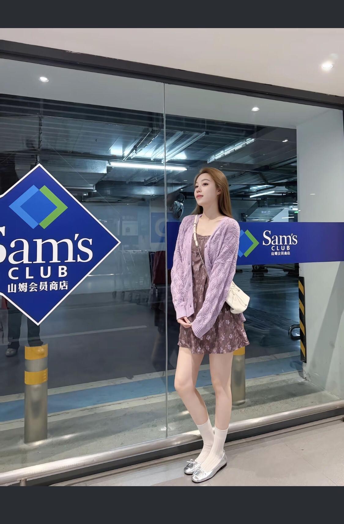 山姆会员商店前打卡,时尚穿搭分享👗👠👜