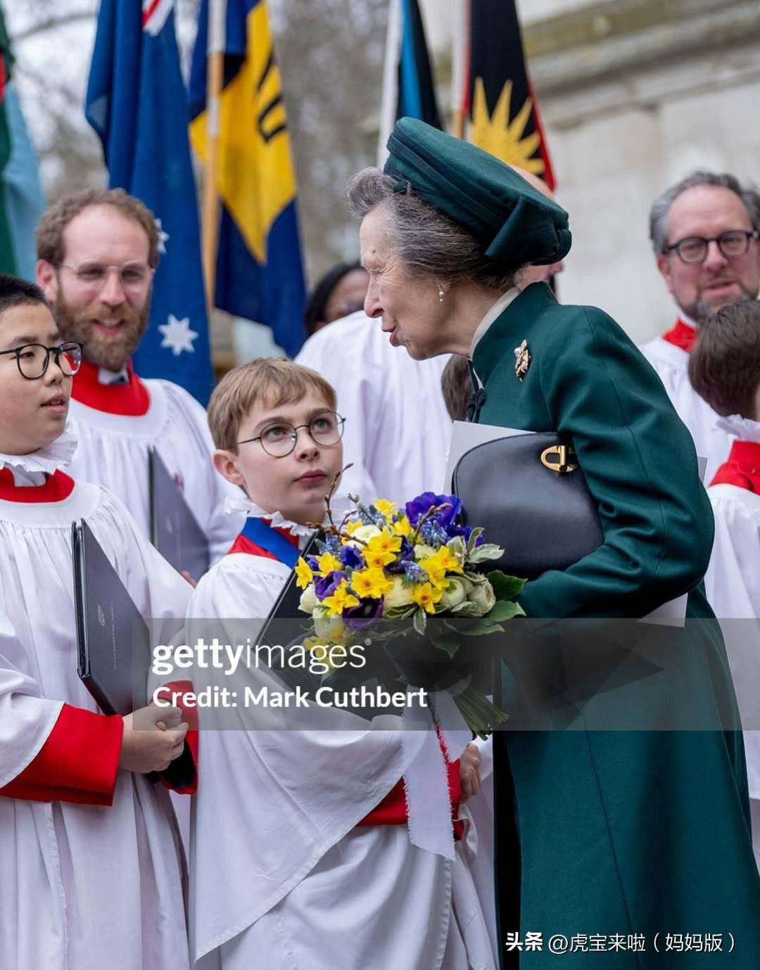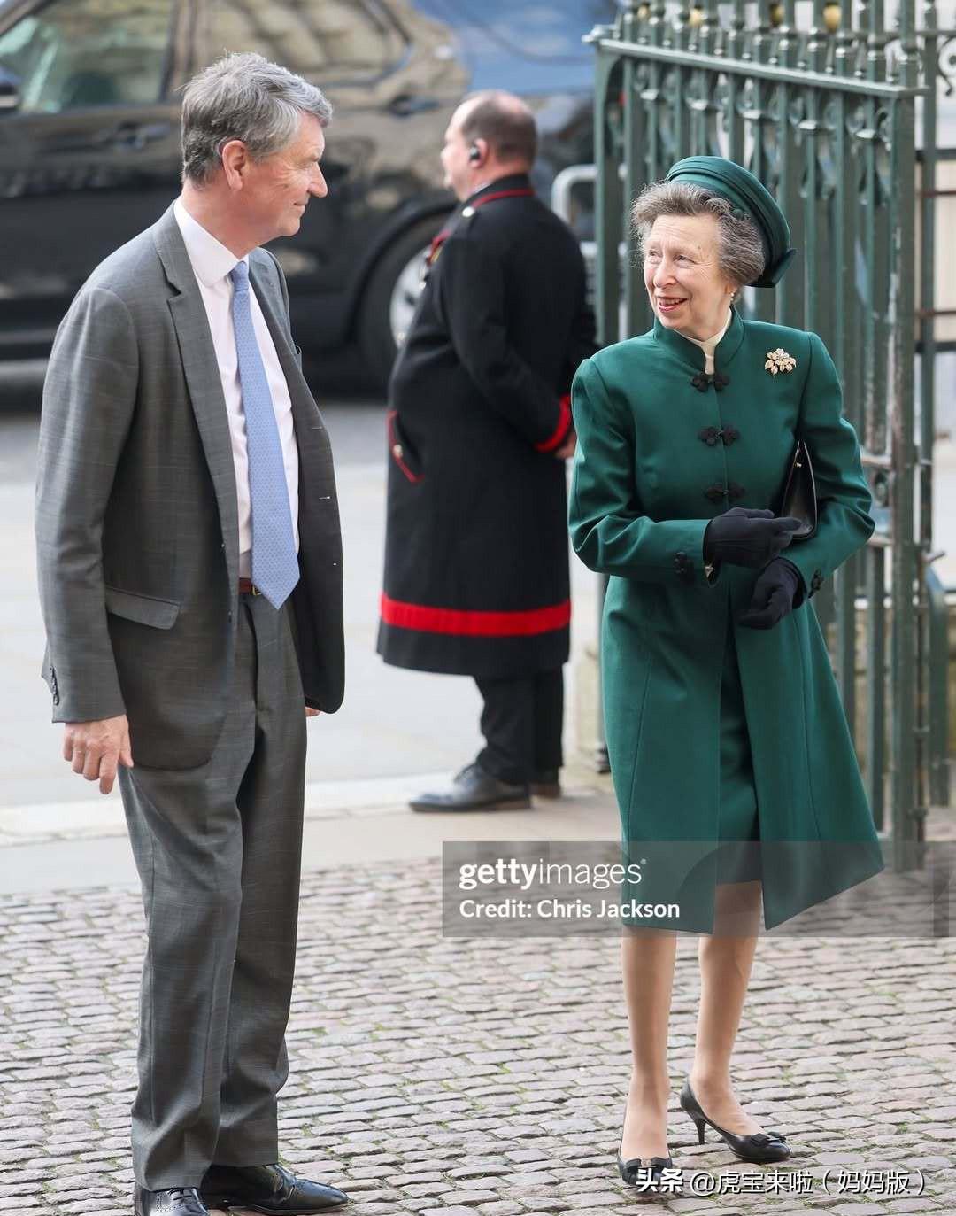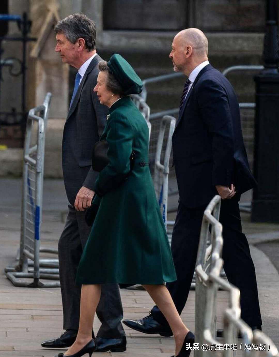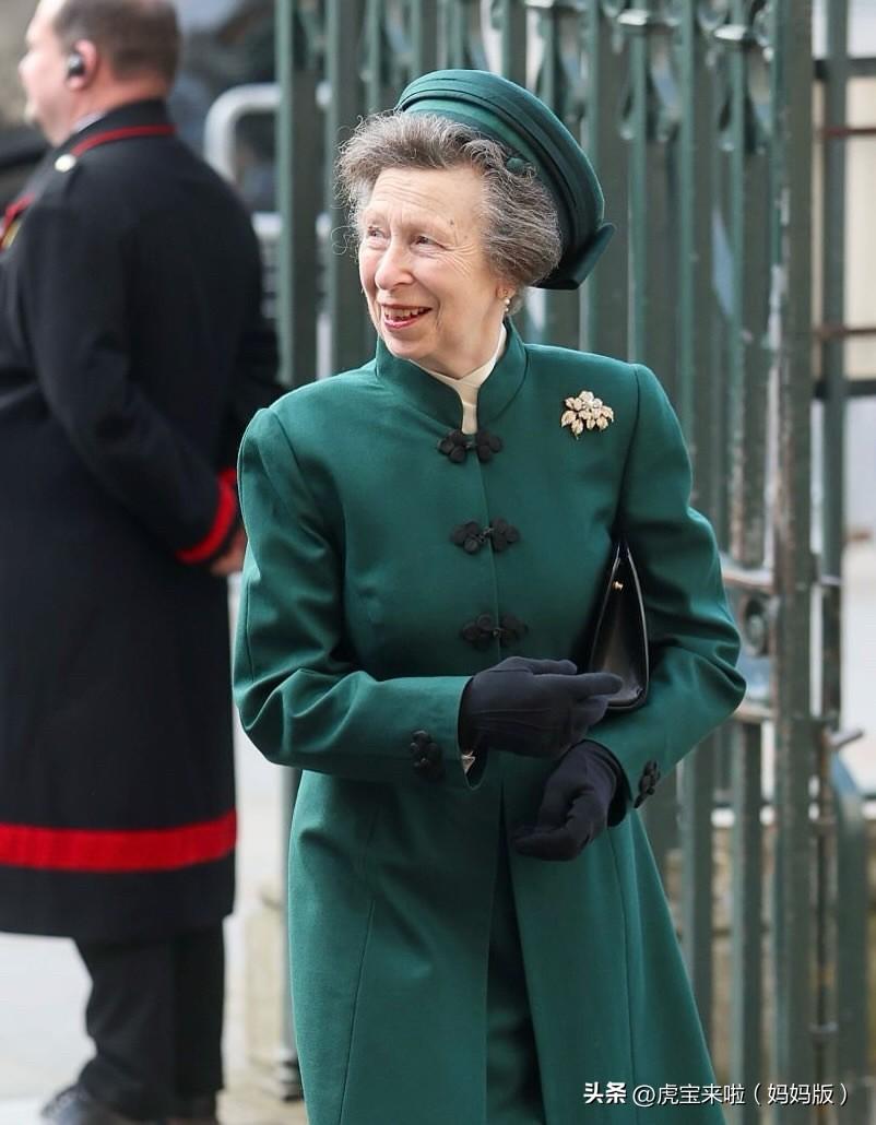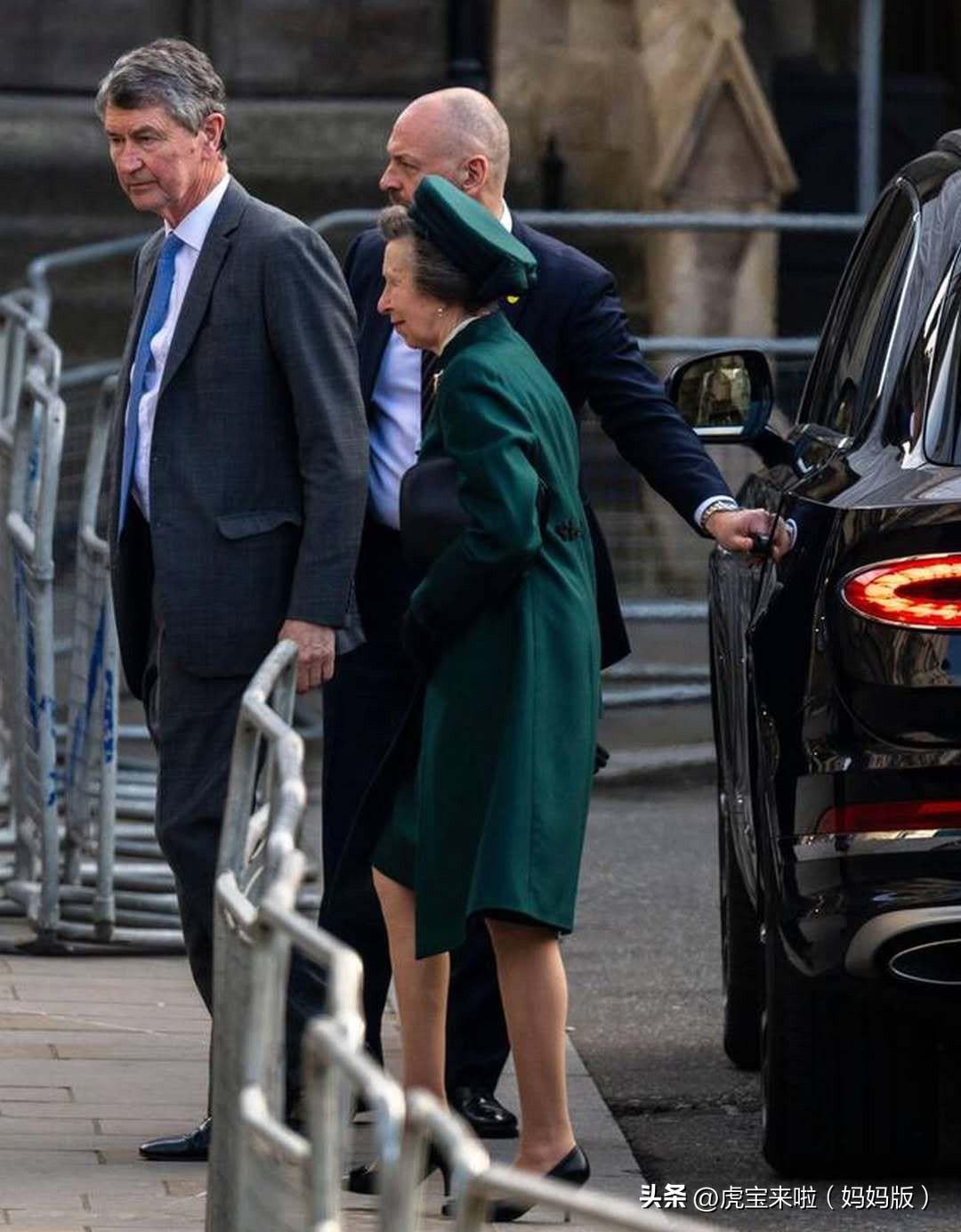安妮公主和丈夫在威斯敏斯特大教堂,出席英联邦日活动!绿色套装生机勃勃!