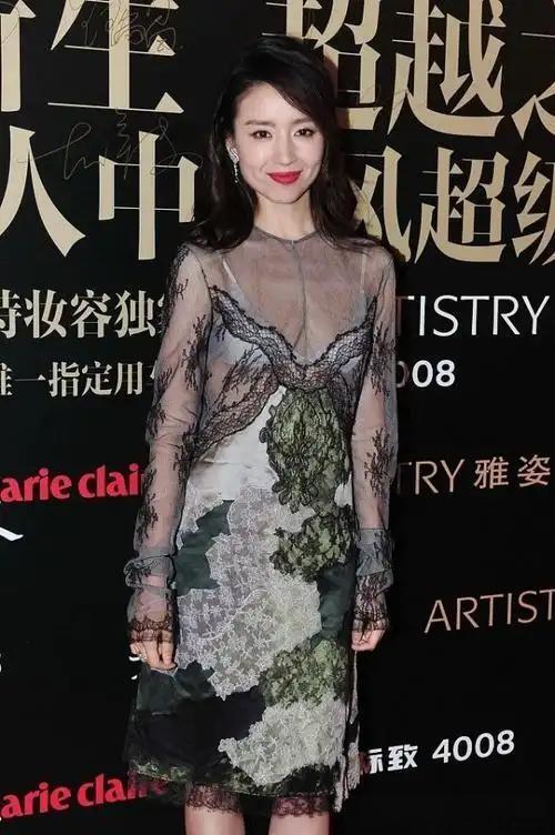 景甜黑色薄纱深V礼服惊艳亮相,充满女人味