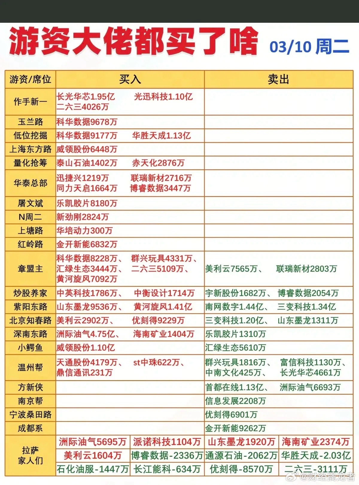 3.10周二 看看游资大佬们都买了啥?龙虎榜数据!