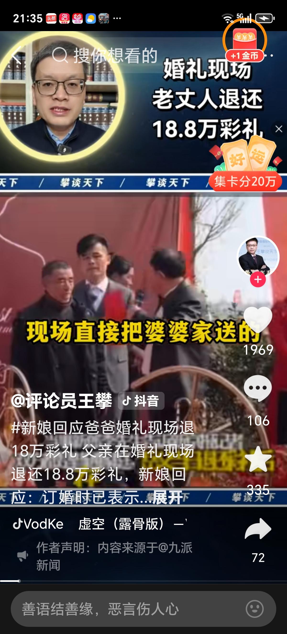 《那100元,并非彩礼,而是岳父悄悄塞给女婿掌心的“成年礼”》 他并未说“不要钱”,而是将18.8万现金一叠叠摆上婚宴桌——用红纸包得方方正正,宛如刚出炉的喜饼。 接着,他当着满堂亲朋的面,一张张抽出,数到第188张时停了下来。 剩下那张百元钞票,他亲手塞进女婿微微颤抖的手心,说道:“留一百,图个‘百里挑一’——不是挑你有多好,而是挑你往后,敢为她承担责任、肯为她放低姿态、愿为她把‘我’字写得小一点。” 全场寂静了三秒。 并非因为钱少,而是因为—— 所有在场的男人,忽然听到了自己父亲当年未曾说出口的话; 所有在场的女人,忽然触摸到了自己压箱底那张未曾花掉的“嫁妆收据”。 廖先生有两个女儿。大女儿出嫁时,他未提及彩礼;小女儿订婚前,他先去男方家吃了顿便饭,饭桌上只问了一句:“你妈腰疼几年了?你爸高血压吃药规律吗?” ——他所求的从来不是“聘金”,而是“托付”的分量。 网友称他为“人间清醒”,可清醒哪有温度? 他分明是把半生的沉默熬成了糖霜,包裹在100元硬币的棱角上: 太硬,怕伤了女婿的自尊; 太甜,又怕冲淡了责任的苦涩; 所以选最薄的纸,印最烫的字——“百年好合”,背面却悄悄压着一行小字:“日子是过出来的,不是买下来的。” 这100元,比18.8万更有分量。 因为它退还的不是金钱,而是旧契约; 它交付的不是祝福,而是新契约: “我把女儿交给你,不是交给你一个需要供养的符号,而是交给你一个会哭会累、但永远值得被蹲下来认真倾听的人。” (结尾暴击) 你转发这条新闻时, 是否也想起—— 自己婚礼上,父亲攥着红包的手,抖得比新郎还厉害? 那不是紧张,是把半辈子没说出口的“对不起”和“谢谢你”,全塞进了那个信封。 评论区已沸腾: 👉 “我爸当年退给我妈300块,说‘够买两斤肉,补补身子’……我哭湿了三包纸巾。” 👉 “现在轮到我了,给儿子存了100万婚房首付——可他女朋友说:‘叔叔,我们想先租三年老小区,学着修漏水的水管。’” 真正的门当户对,从来不是银行卡余额,而是两双手,都愿意为对方弯下去。 女婿的见面礼 女婿拿钱