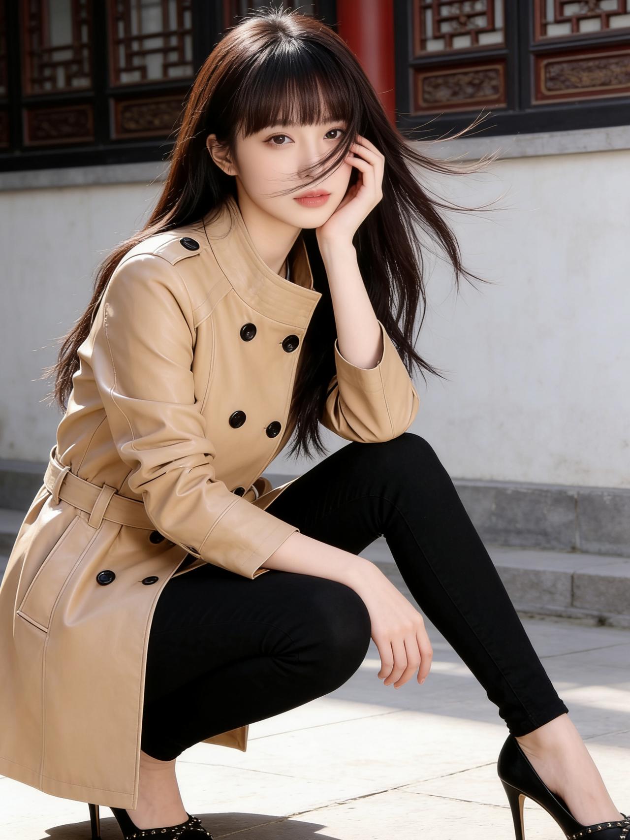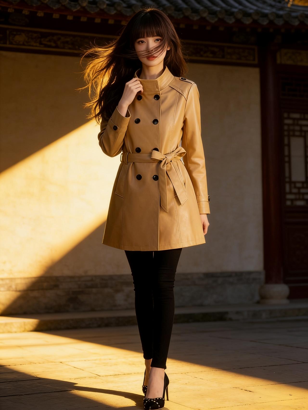优雅的蓝色连体裤,配上红色高跟鞋,在古色古香的建筑前拍了照,感觉自己美美哒!蓝色