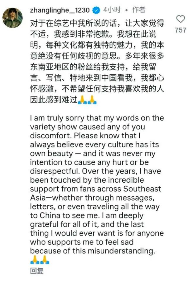 张凌赫道歉竟然上了热一! 张凌赫和田曦薇综艺《HI6》宣传杂志《逐玉》,田曦薇画的张凌赫有点潦草抽象,张凌赫随口一说“感觉像出生在东南亚”,结果被部分网友解读为歧视东南亚,事情发酵后,他在外网道歉,看了下原视频,感觉真没啥,很显然是刻意解读的这些人自己有种族歧视的想法,如果张凌赫当初说的是“看起来像欧美人”,会被这些人解读成夸奖和赞美吧。