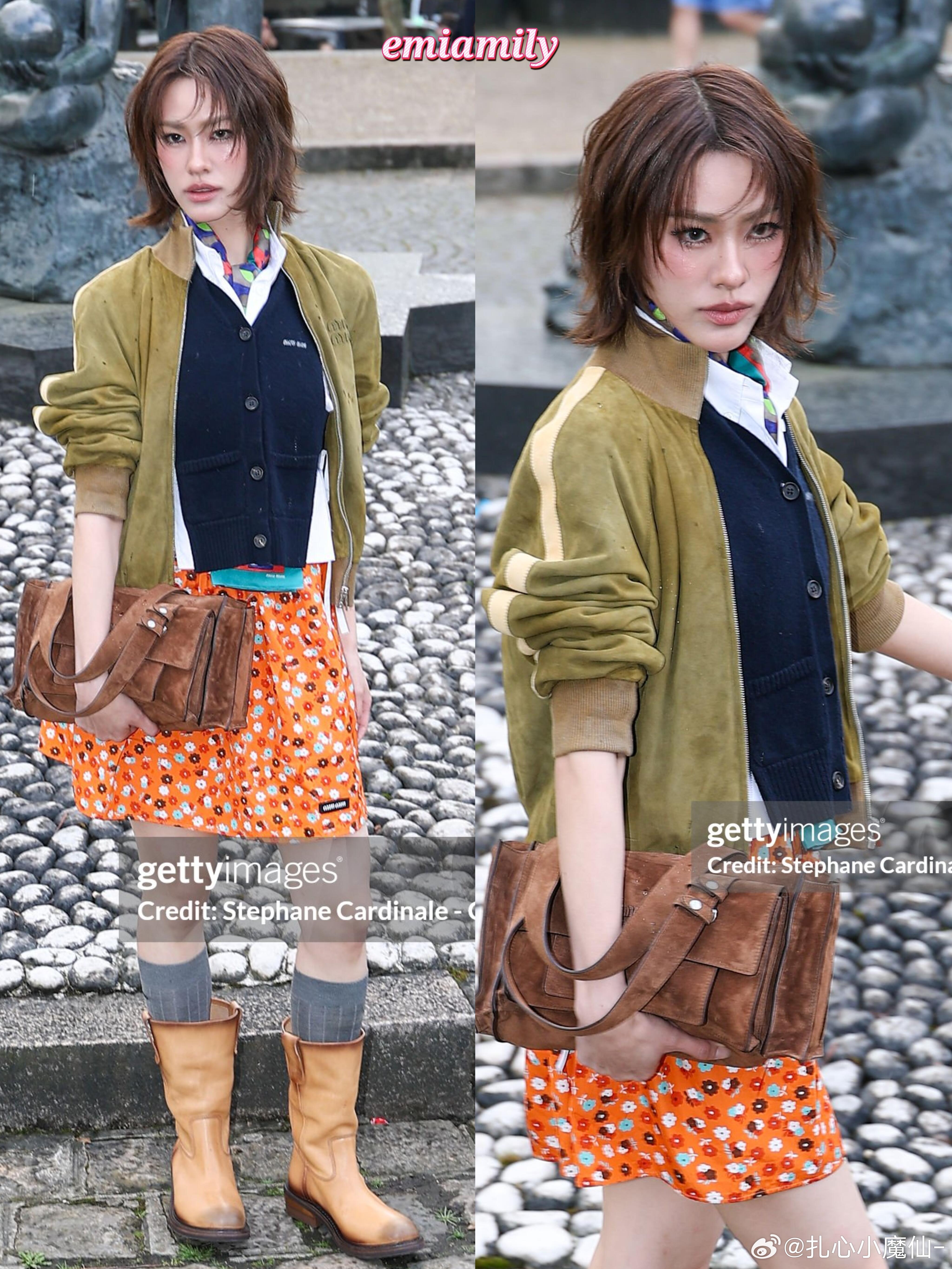 ella机场出发miumiu巴黎时装周,今年皮衣造型好多啊Celine也是。时
